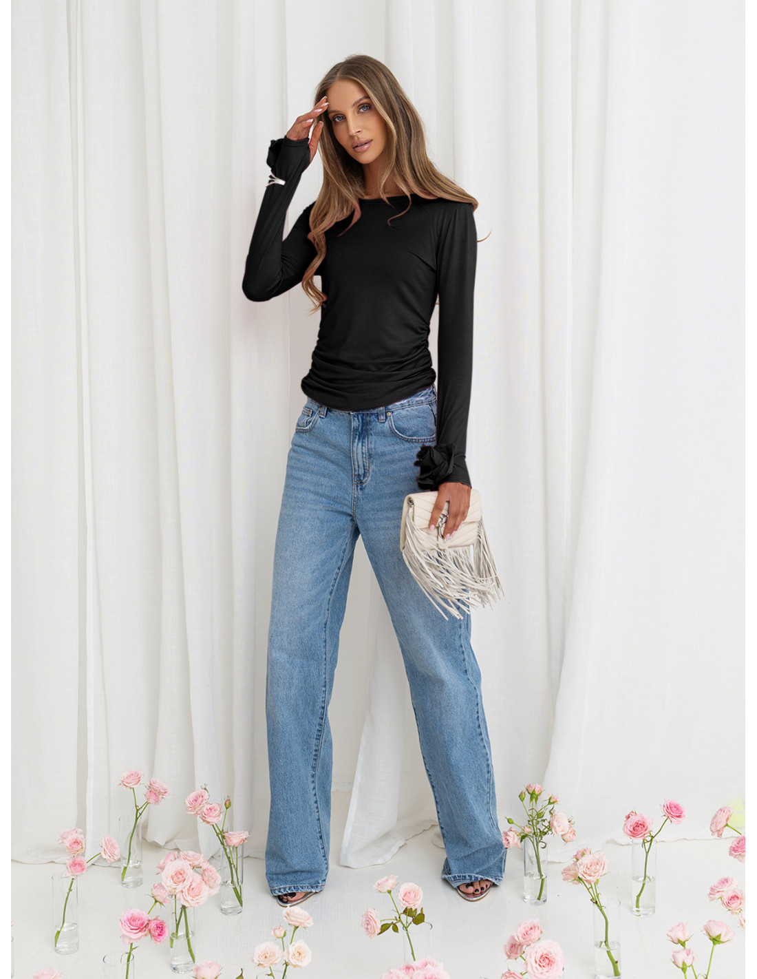 Bluzkę możesz zestawić z jeansami z wysokim stanem, szerokimi spodniami lub spódnicą, tworząc stylowe i modne zestawy na każdą okazję.