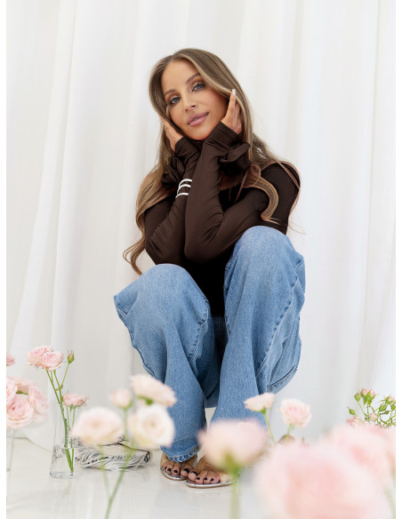 Wiskozowa bluzka z ozdobnymi różami JARISA - czekoladowa