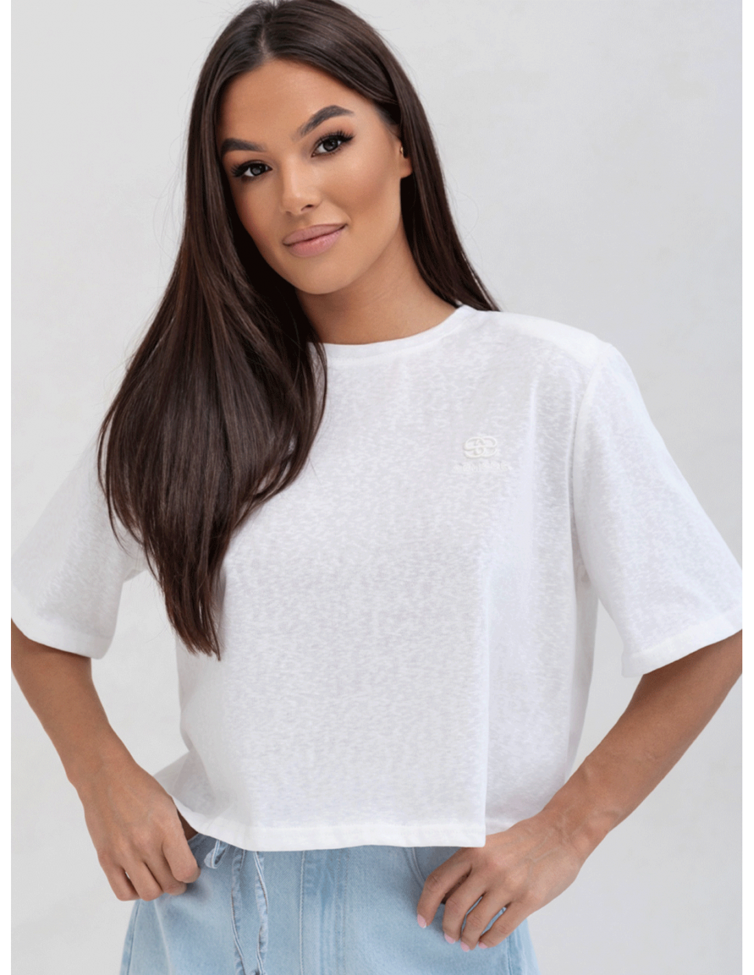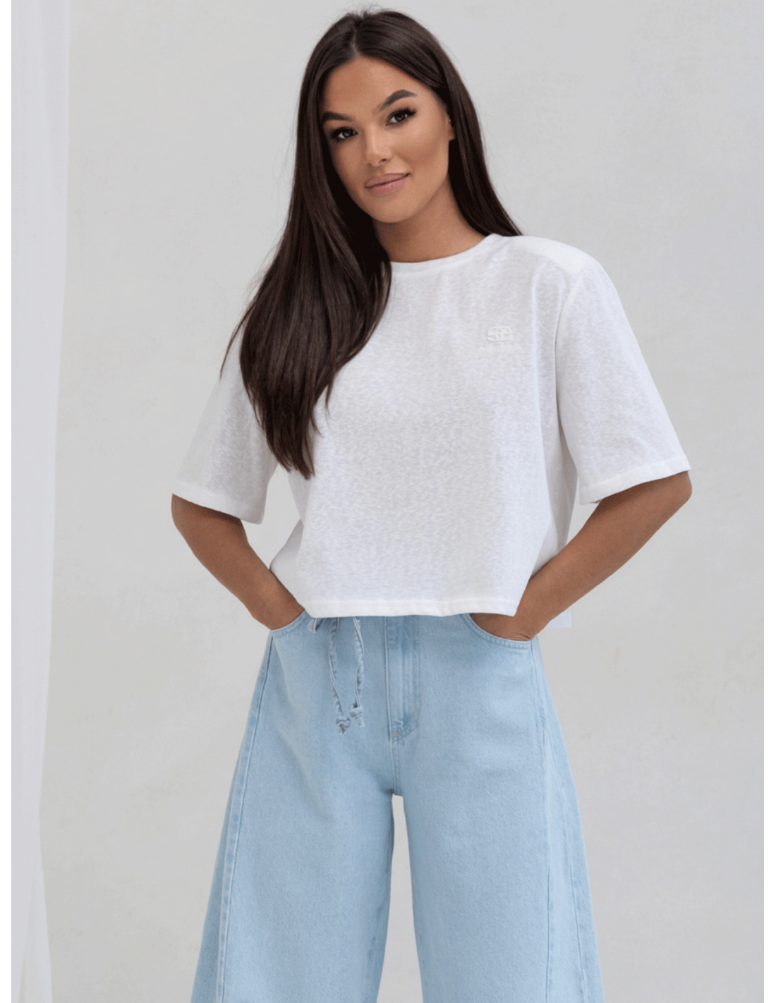Stylowy bawełniany T-shirt NOE to idealna propozycja dla kobiet, które cenią sobie połączenie komfortu i modnego, minimalistycznego stylu.