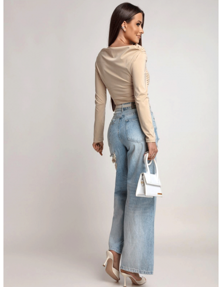 Dopasowana bluzka z asymetrycznym dołem ILIANA - beżowa