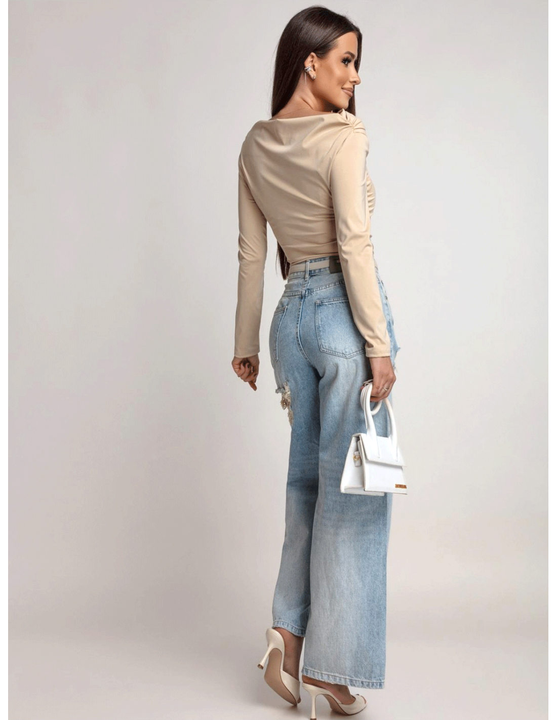 Z jeansami i szpilkami – klasyczny, kobiecy look z nutą elegancji.