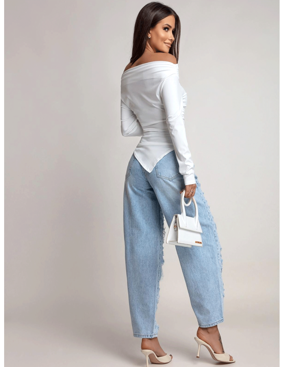 Dopasowana bluzka z asymetrycznym dołem ILIANA - biała