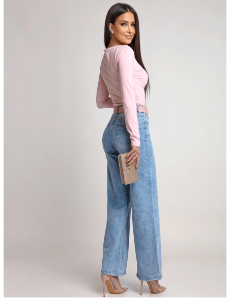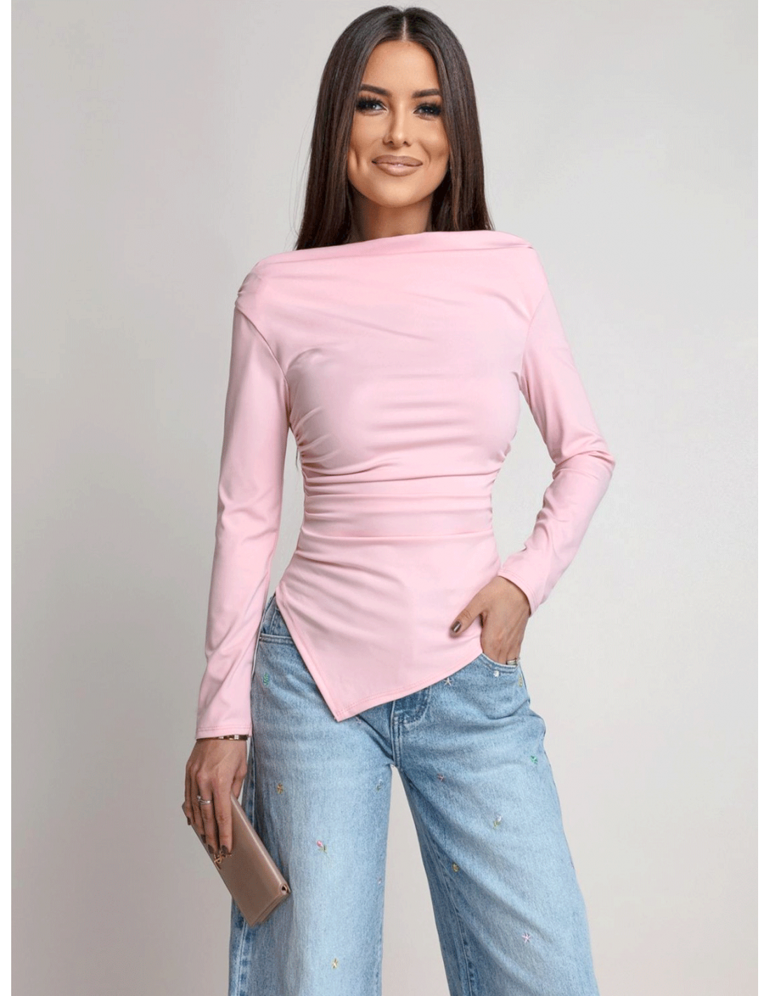 Dopasowana bluzka z asymetrycznym dołem ILIANA - pudrowy róż
