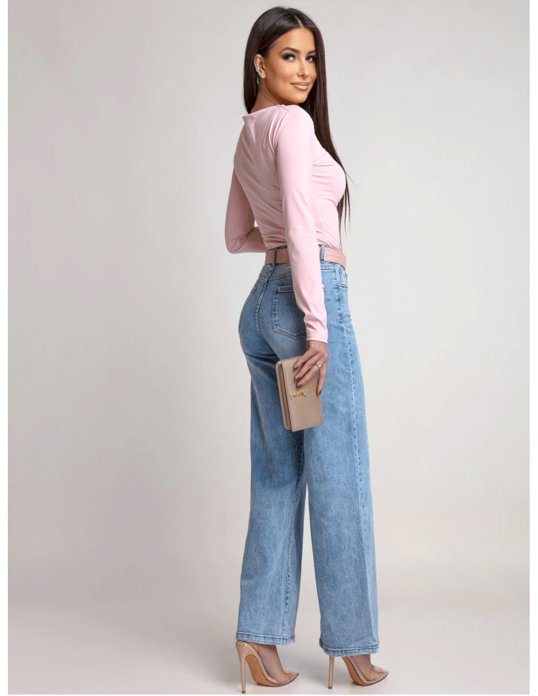 Z dopasowaną bluzką w kolorze pudrowego różu twórz stylizację pełne delikatności i klasy.