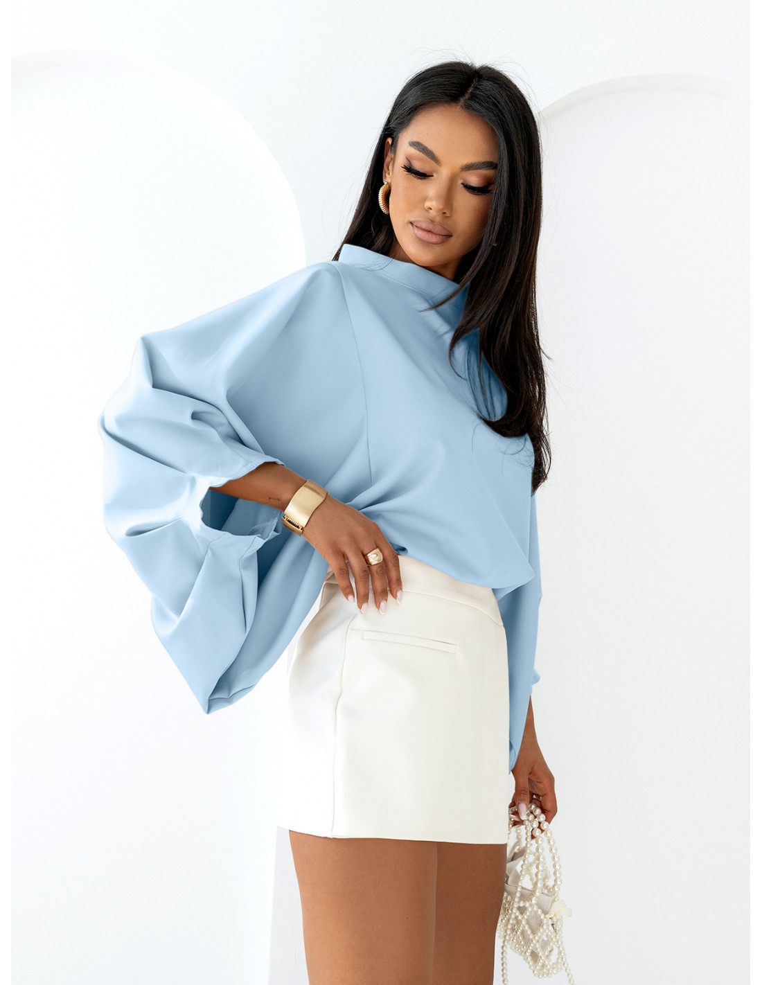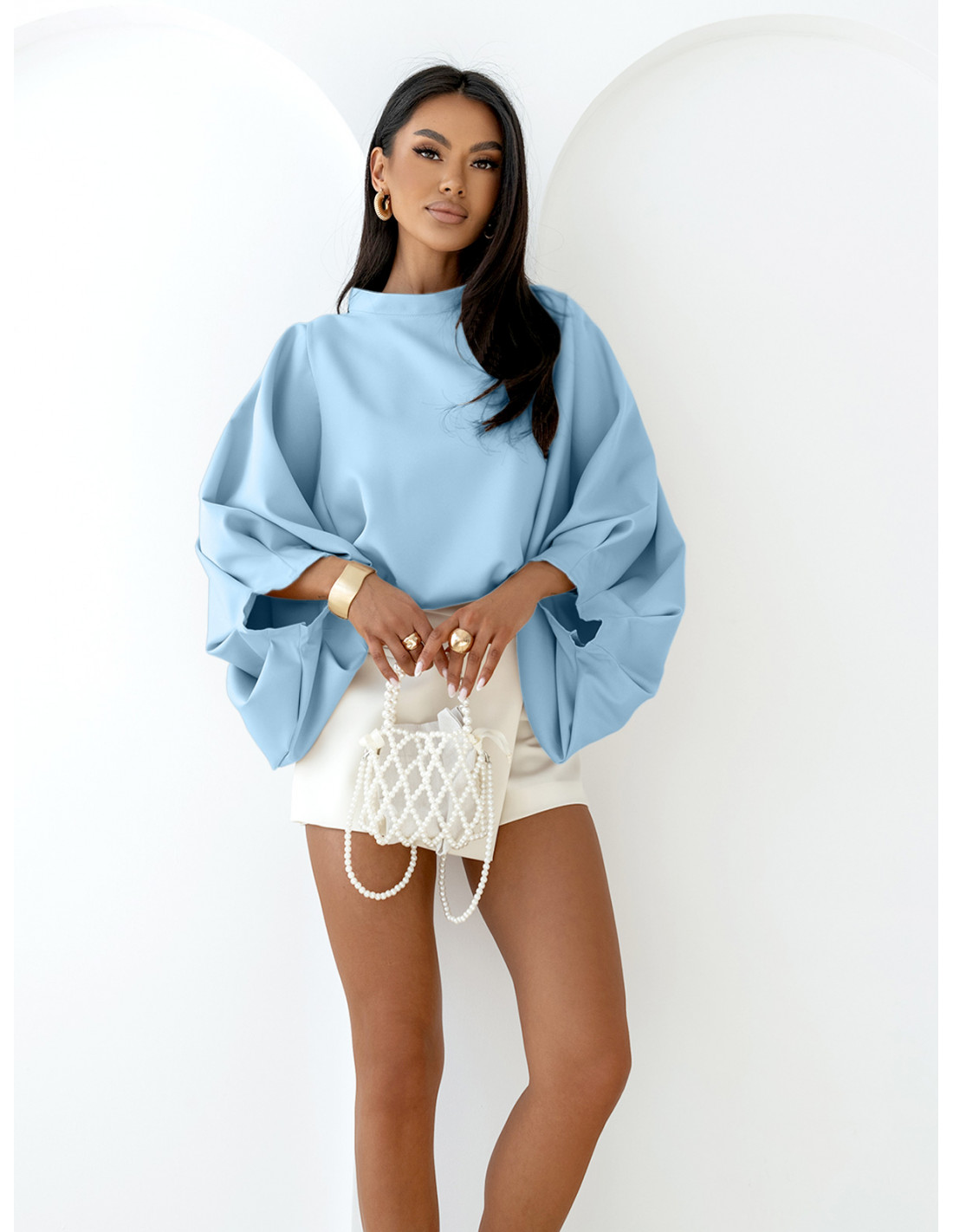 Bluzka oversize z bufiastymi rękawami ESTRELLA - błękitna