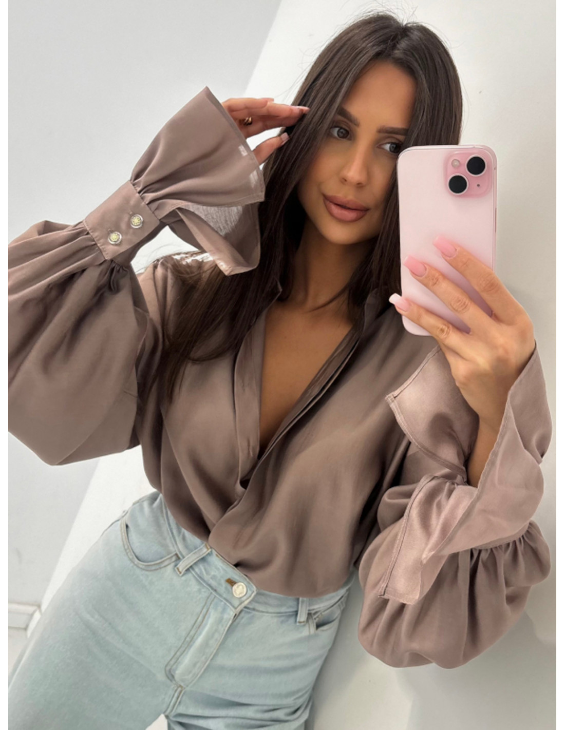 Ta bluzka w kolorze mocha mousse to nie tylko styl, ale też komfort, dzięki któremu będziesz czuła się świetnie przez cały dzień!