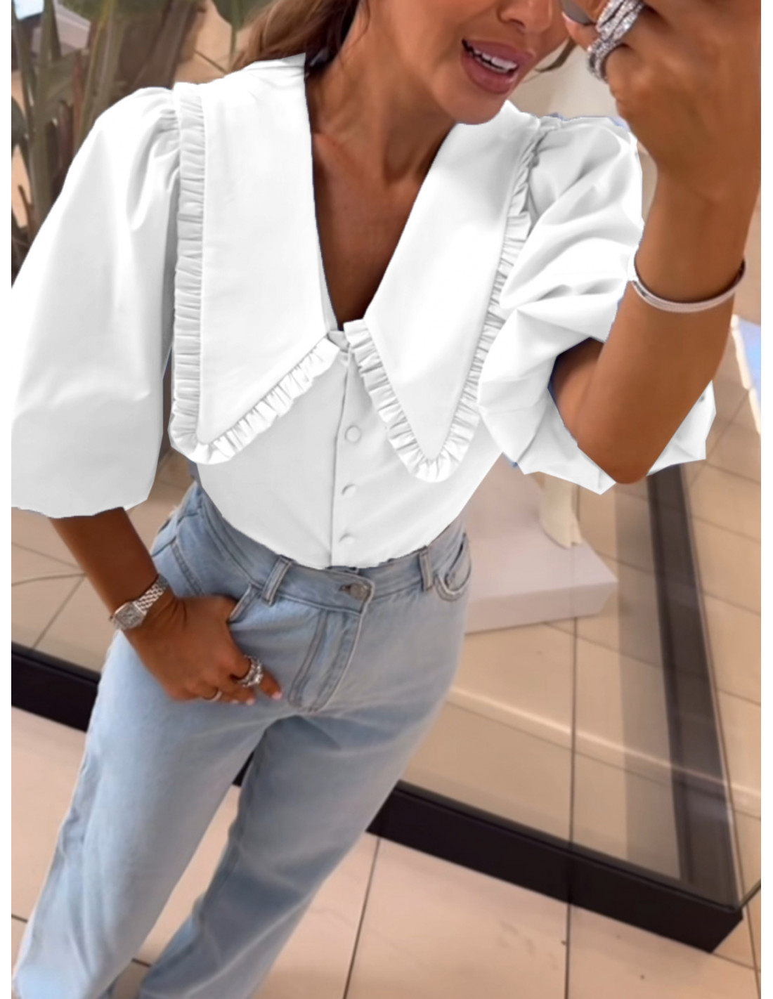 Bawełniana koszula z dużym kołnierzem NAVIA - biała