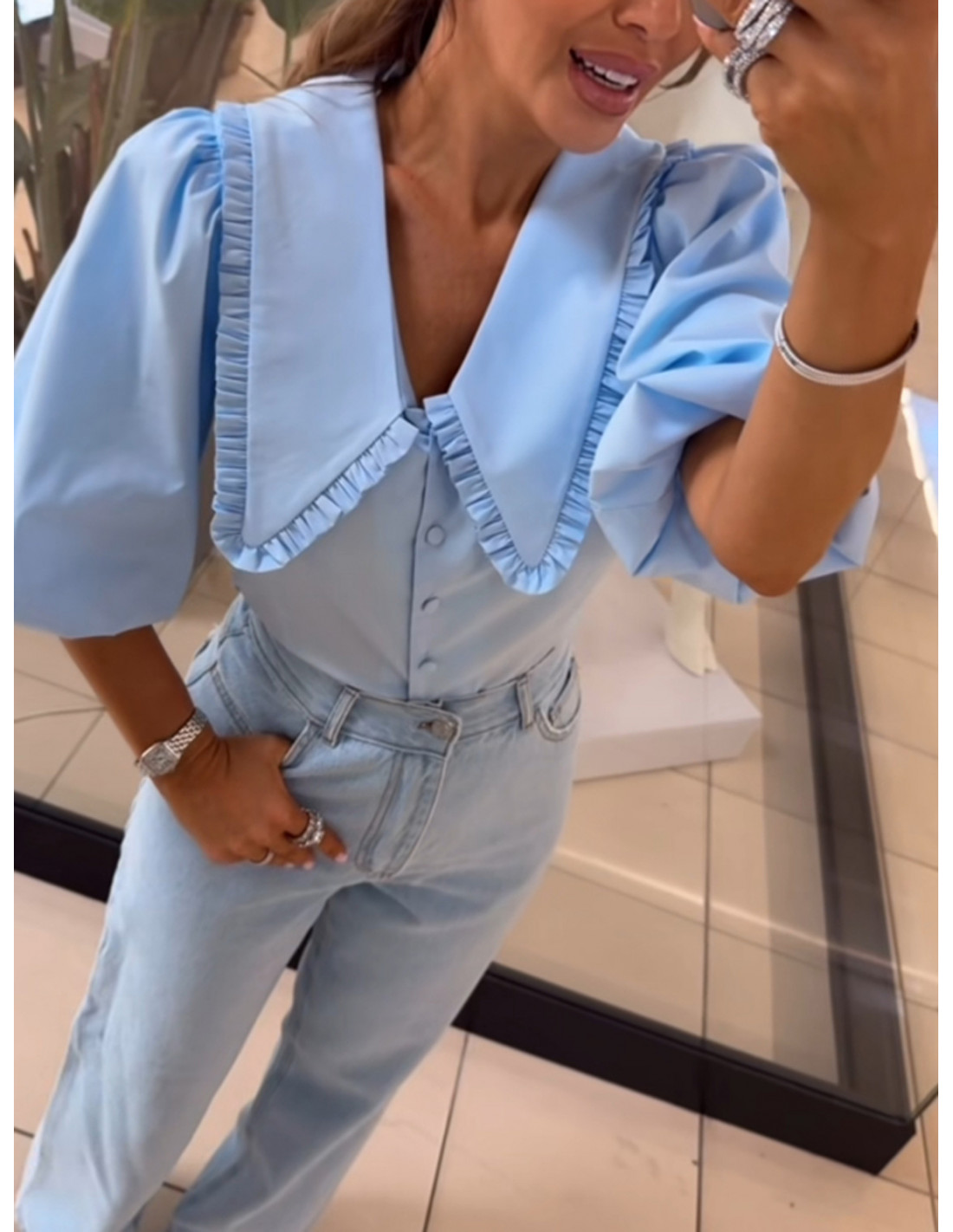 Bawełniana koszula z dużym kołnierzem NAVIA - błękitna