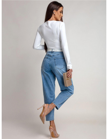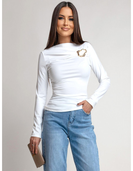 Dopasowana bluzka z ozdobną klamrą CLEMENTE - biała
