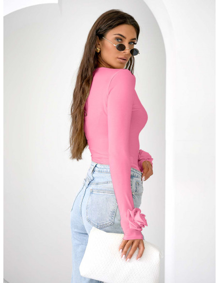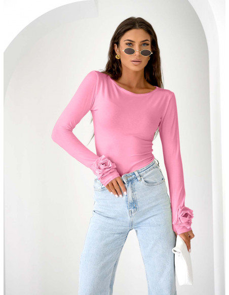Wiskozowa bluzka z różą na rękawie ELIJA - pudrowy róż