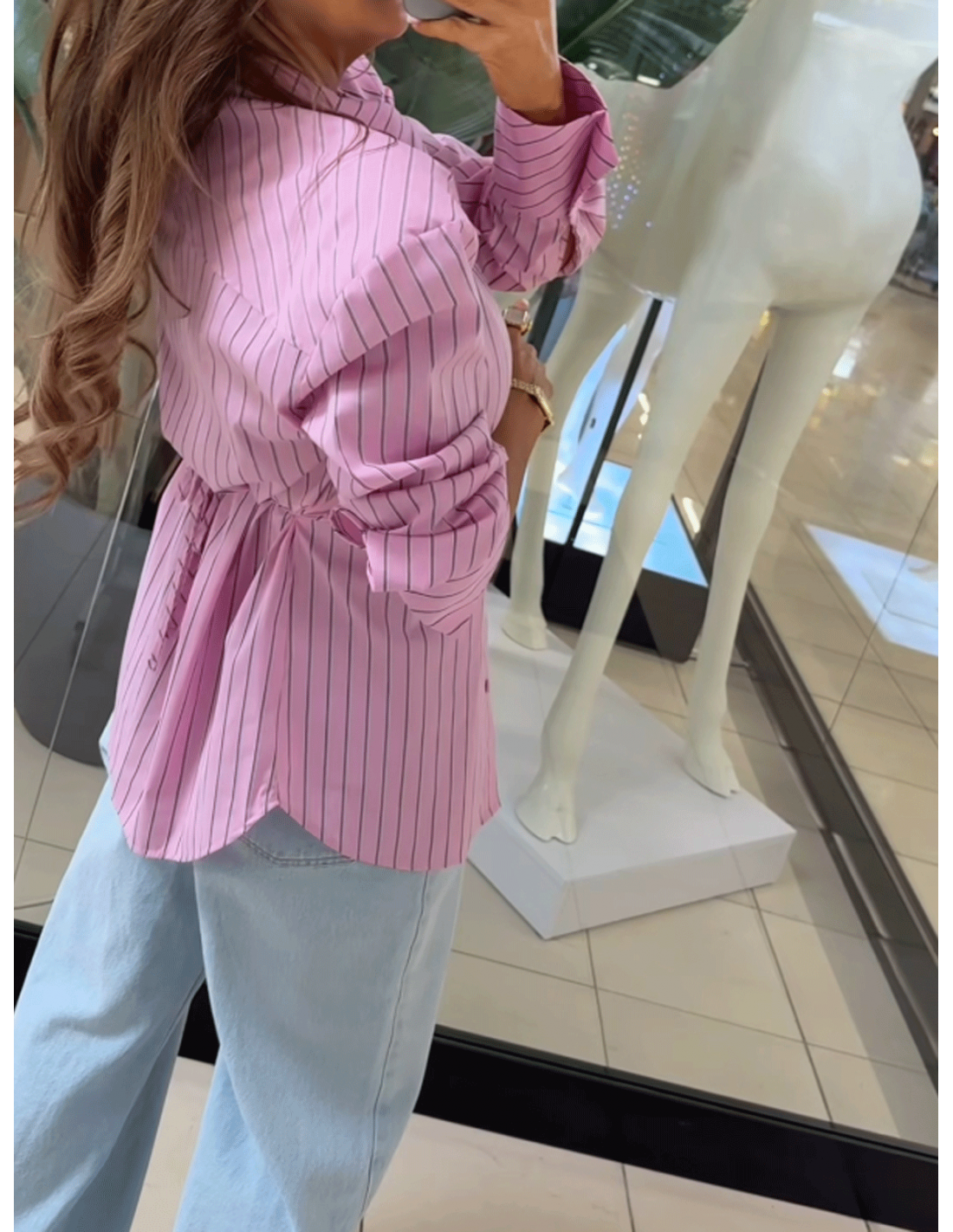 Lekko taliowany krój pięknie podkreśla sylwetkę, a wiązanie z tyłu pozwala jeszcze lepiej dopasować koszulę do figury, tworząc efekt smukłej talii.