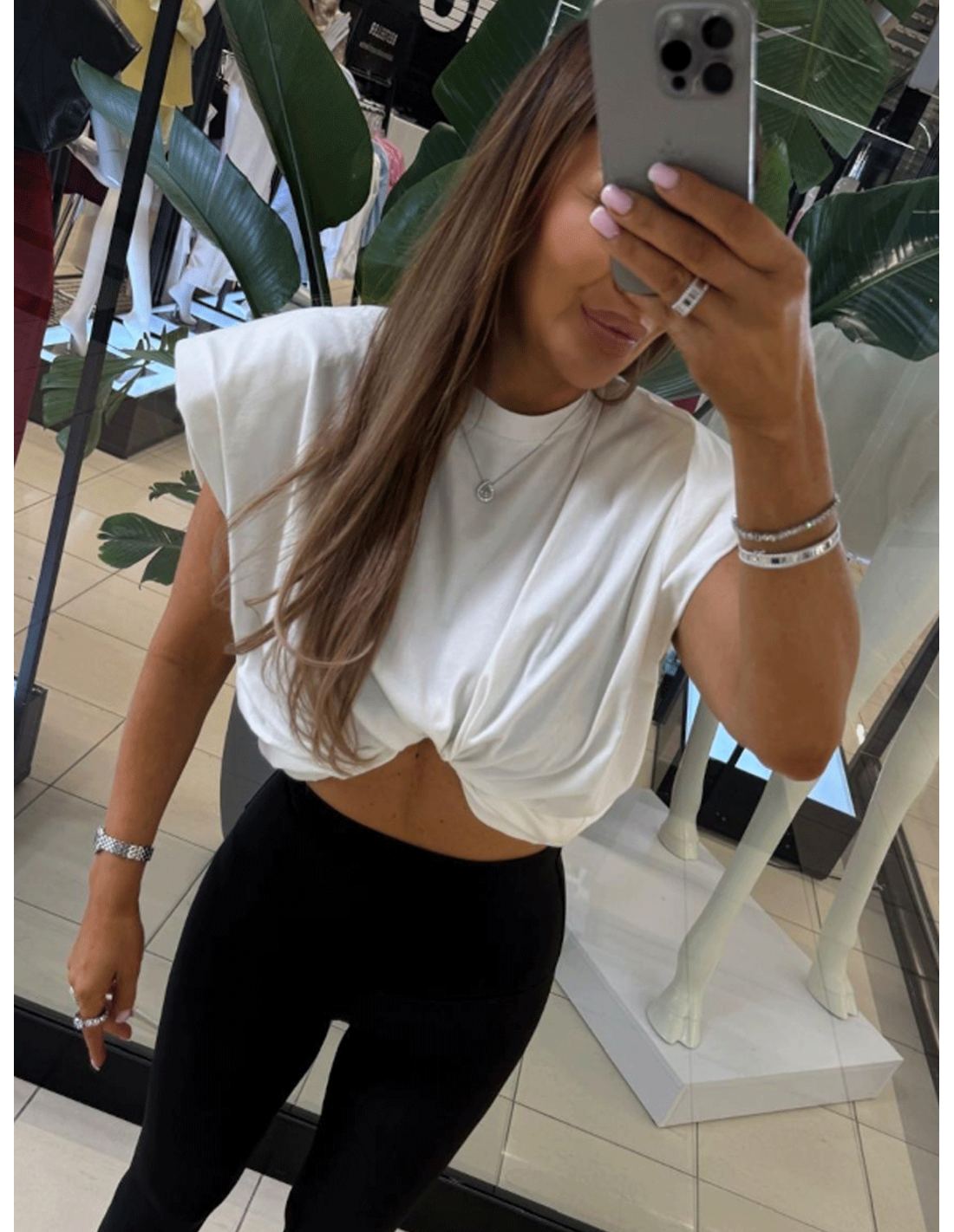 Bawełniany t-shirt z poduszkami i zakładkami VESARIA - biała