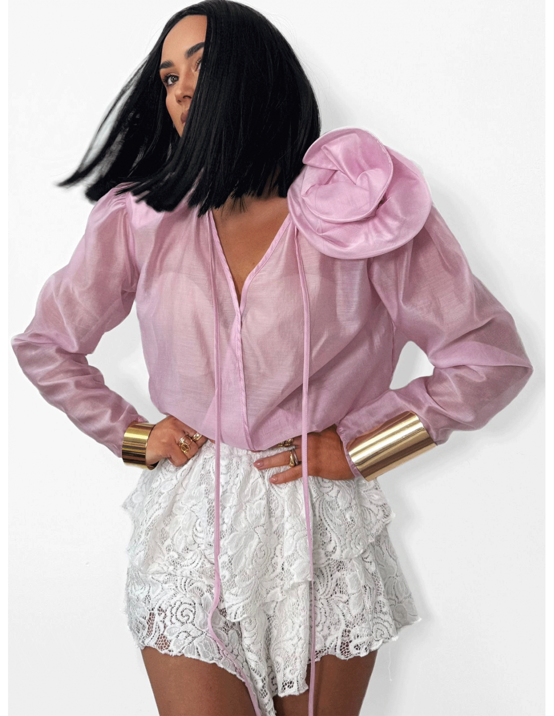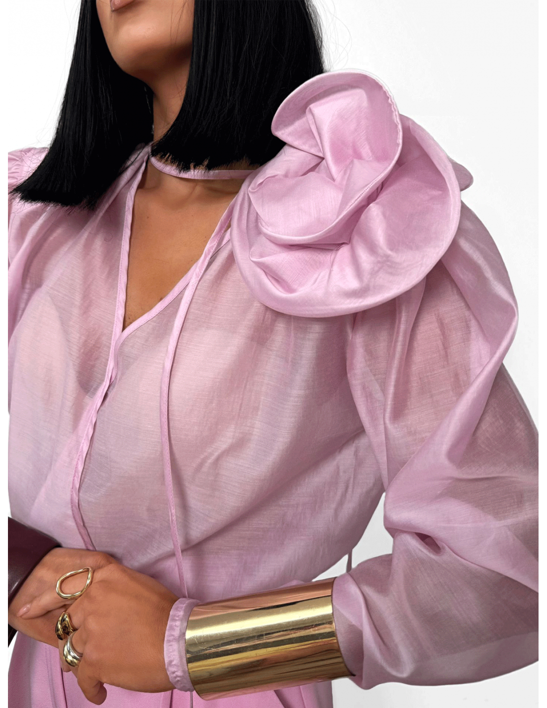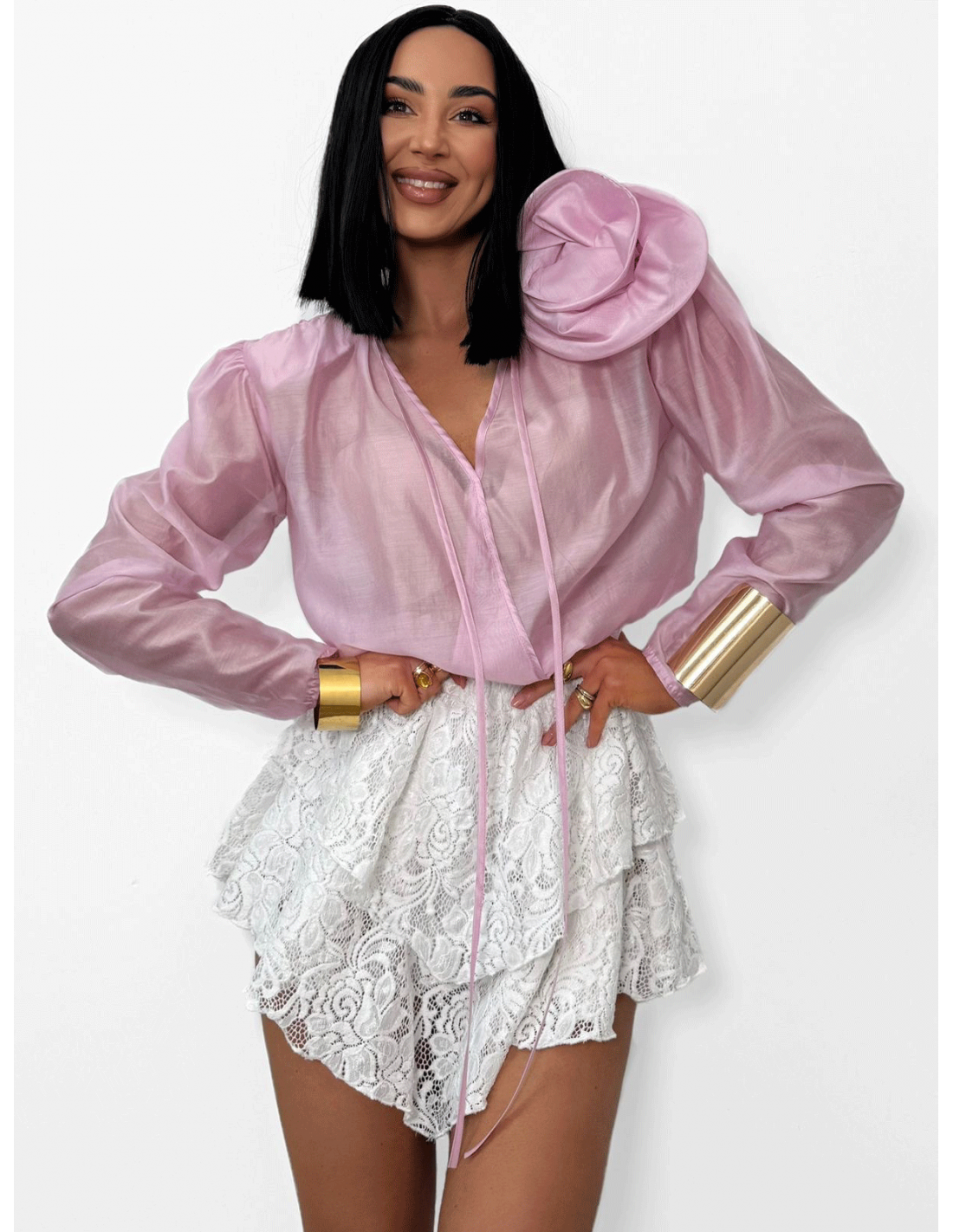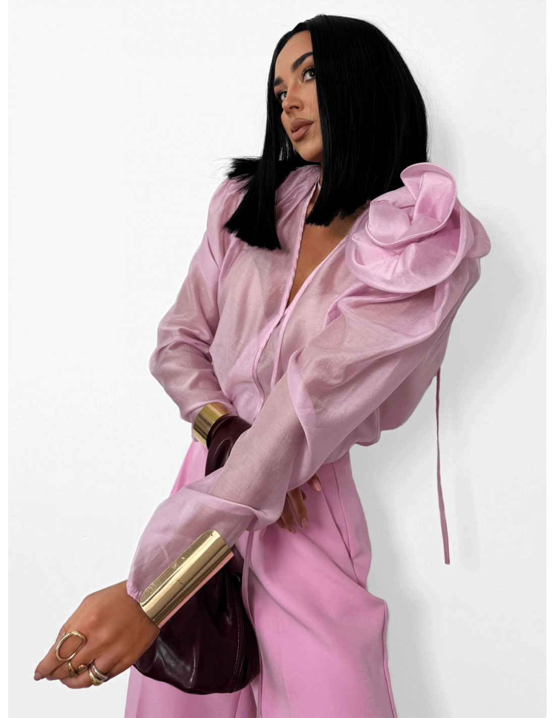 Wiskozowa bluzka koszulowa z kwiatem MAISA - różowa