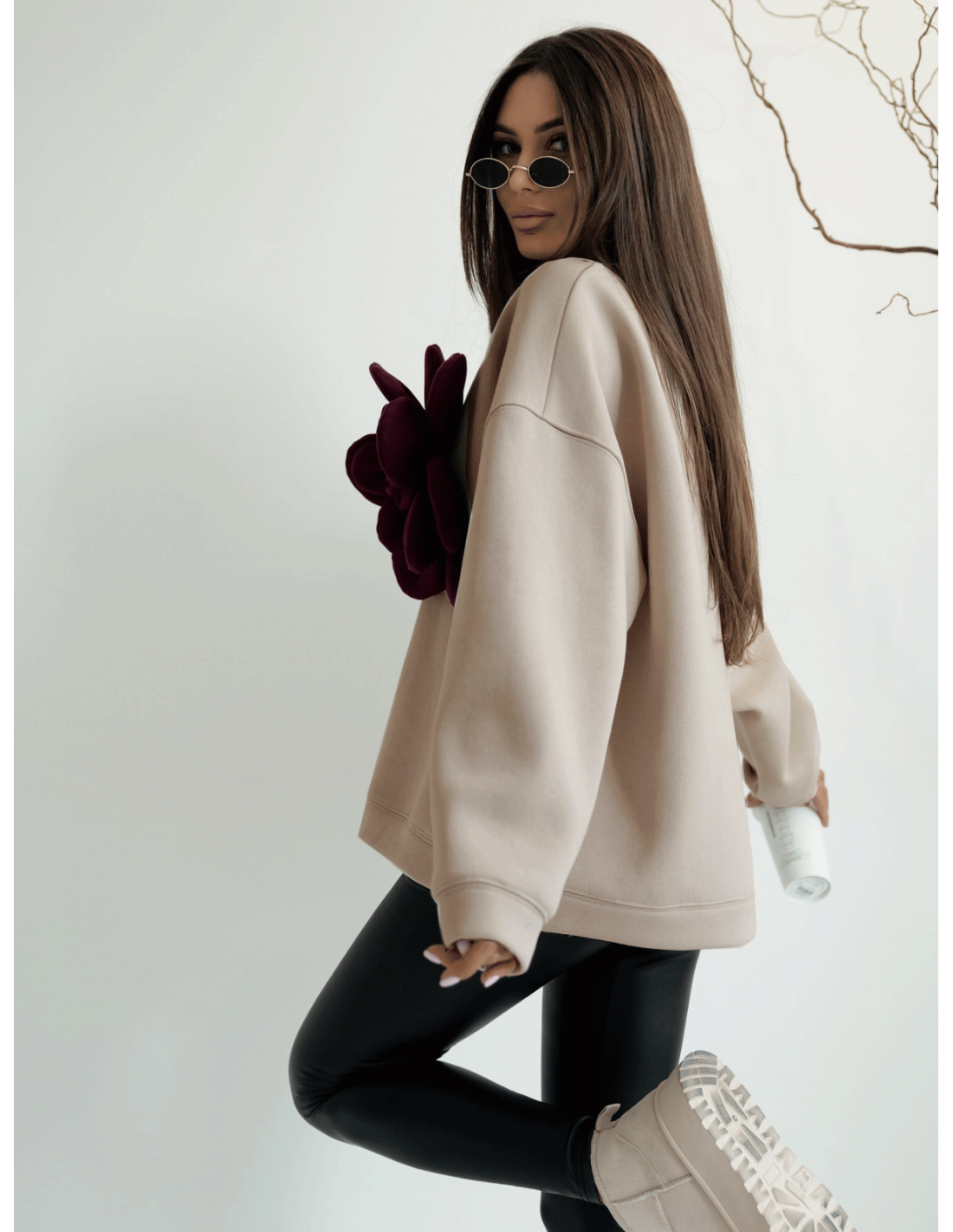 Oversizowa bluza z ozdobnym kwiatem DASY - beżowa