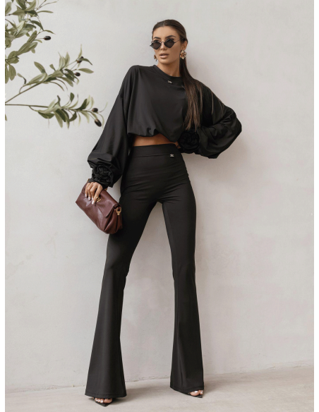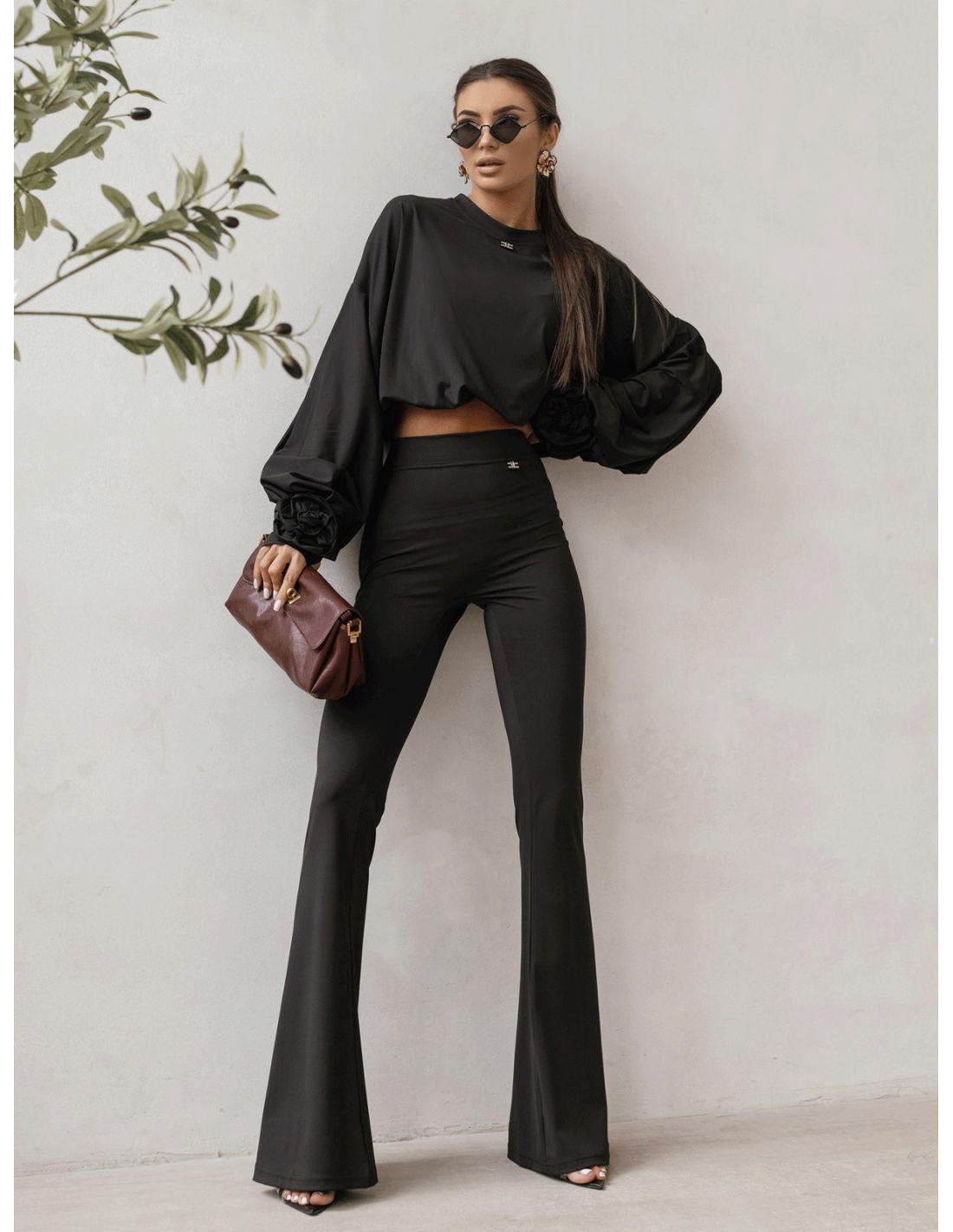 Ozdobne róże przy rękawach dodają całości romantycznego, modowego twistu i sprawiają, że ten model wyróżnia się na tle klasycznych bluz.