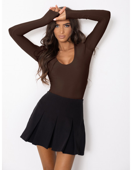 Odkryj idealne połączenie stylu i wygody z klasycznym body z długim rękawem w odcieniu gorzkiej czekolady.
