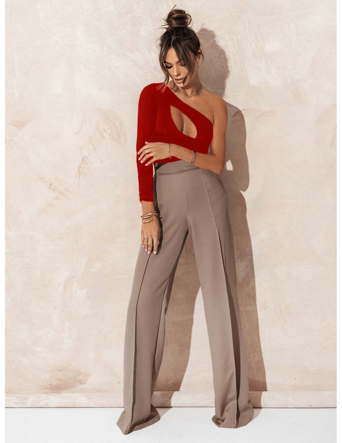 Body na jedno ramię z wycięciem ANVIS - czerwone