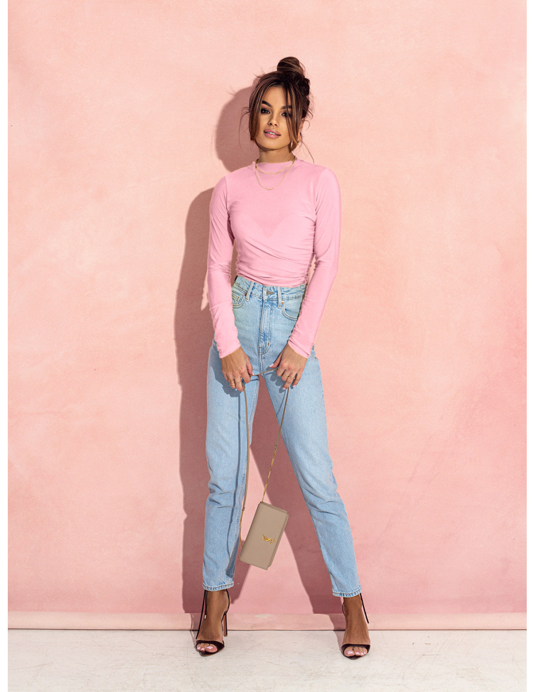 Body w kolorze pudrowego różu świetnie sprawdzi się zarówno w zestawieniu z casualowymi jeansami