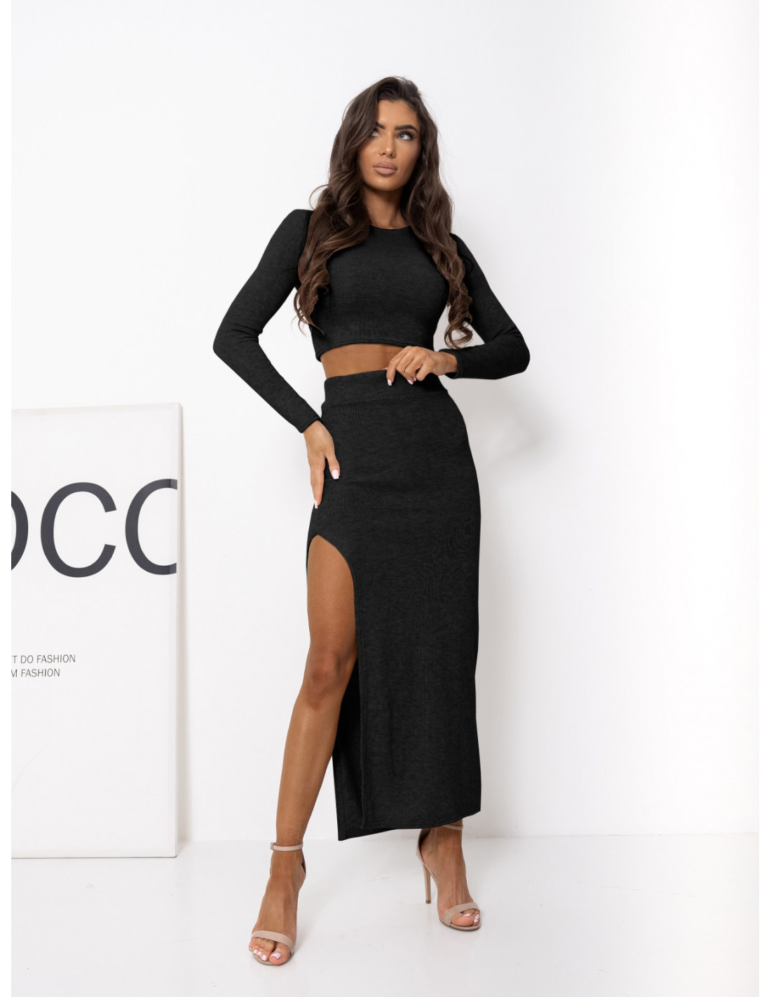 Dzianinowy crop top z długim rękawem JADA - czarny