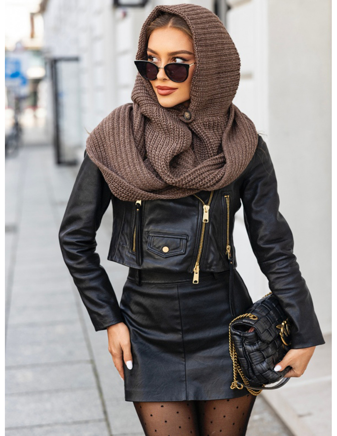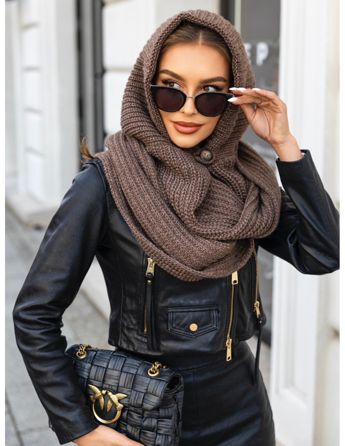 Czapkoszal z domieszką wełny baclava BRETA - czekoladowy