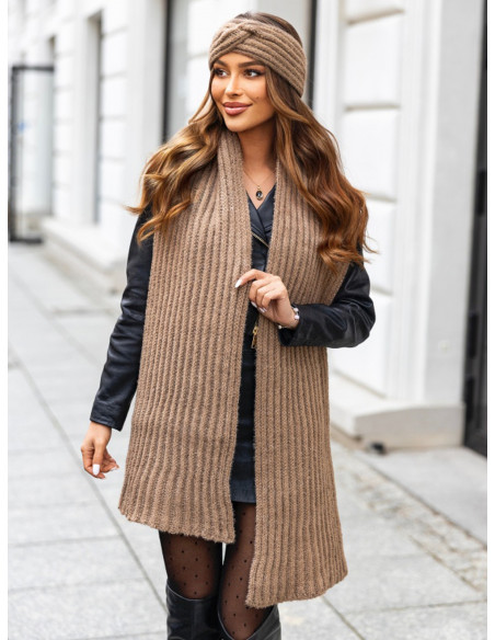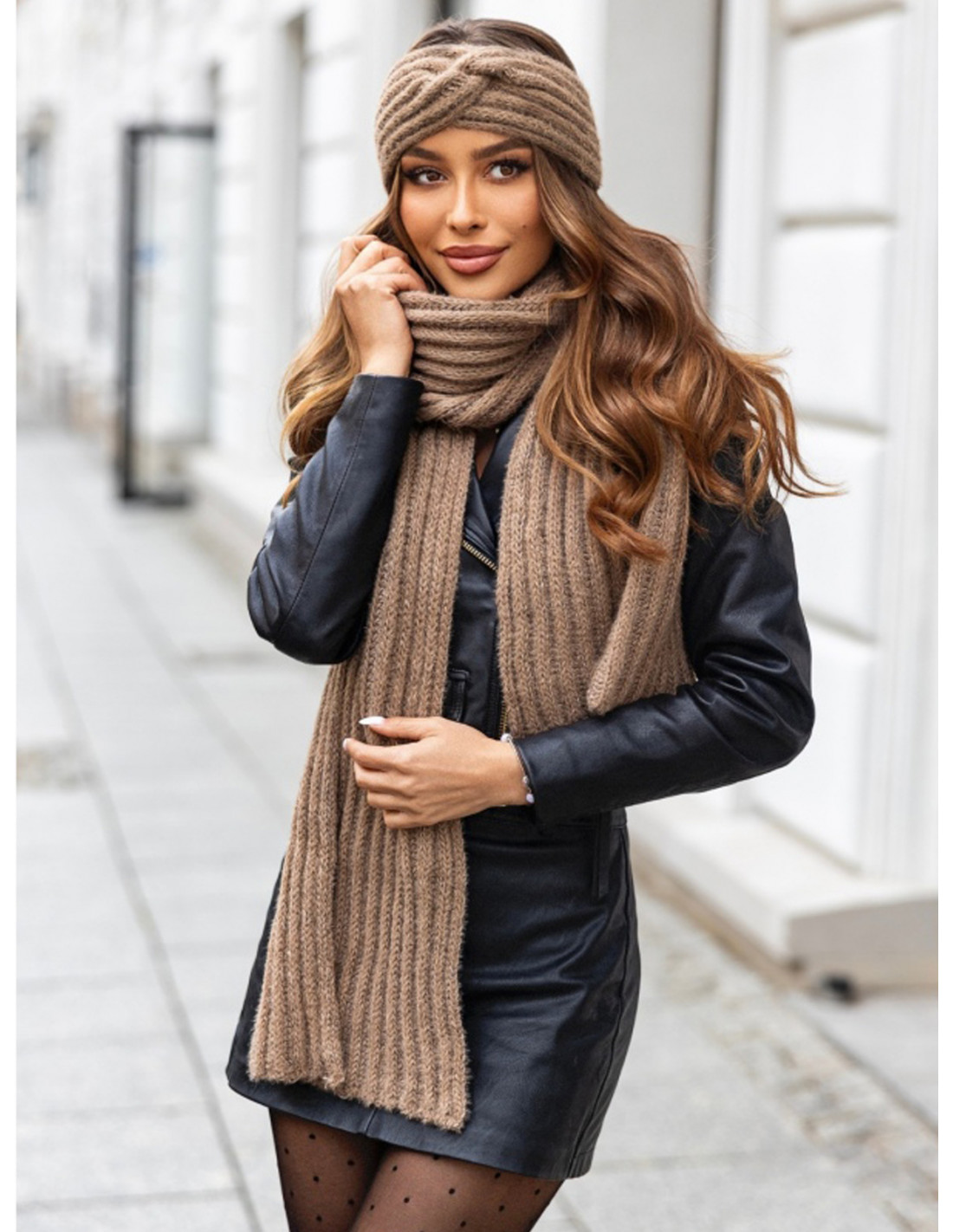Modny komplet szalik z opaską w kolorze cappuccino to idealne połączenie stylu i funkcjonalności na chłodne dni jesieni i zimy.