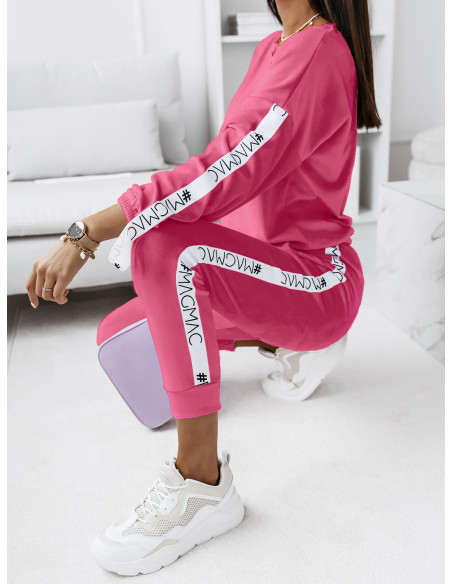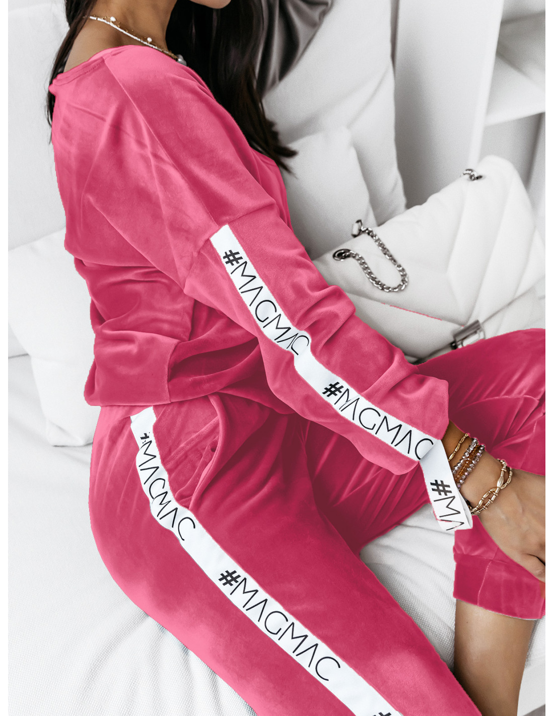 Welurowy komplet bluza+spodnie WALIA - fuksjowy
