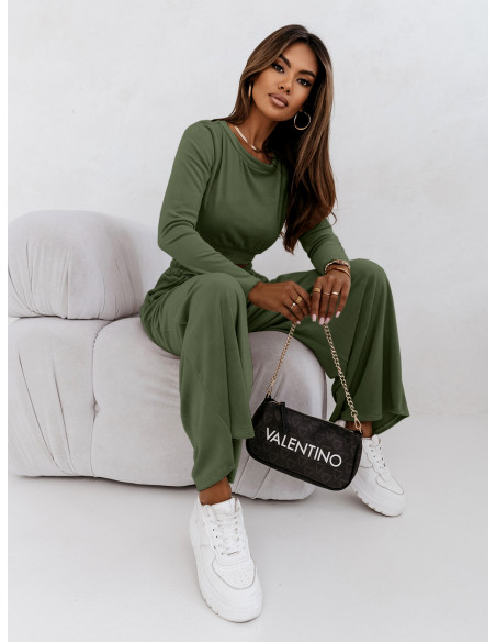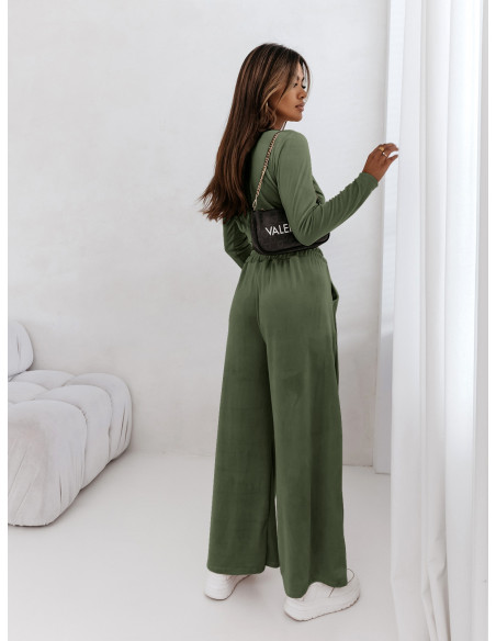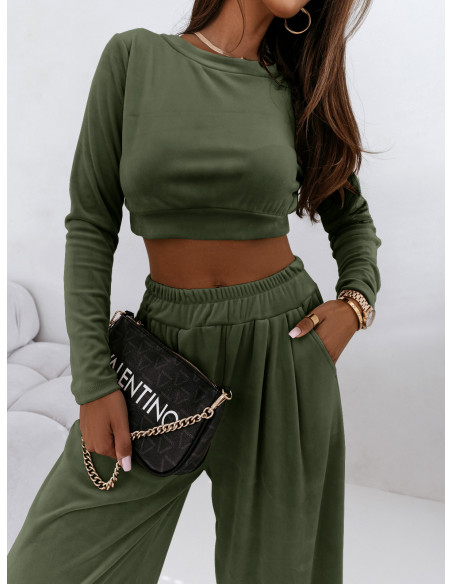 Welurowy dres szerokie spodnie + bluza URREZA - butelkowa zieleń