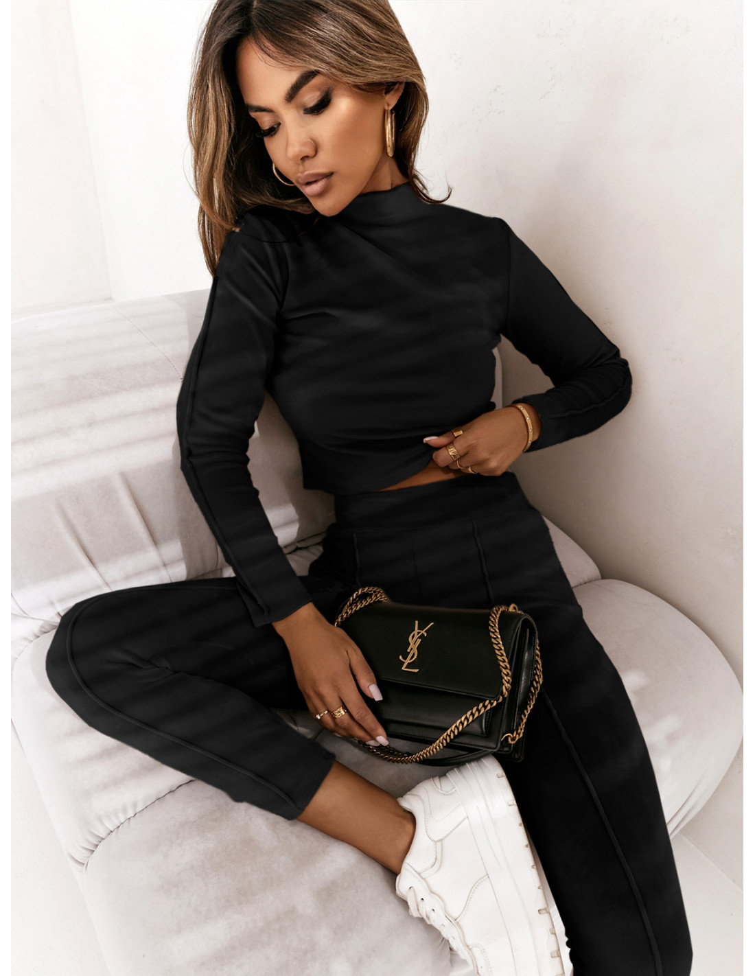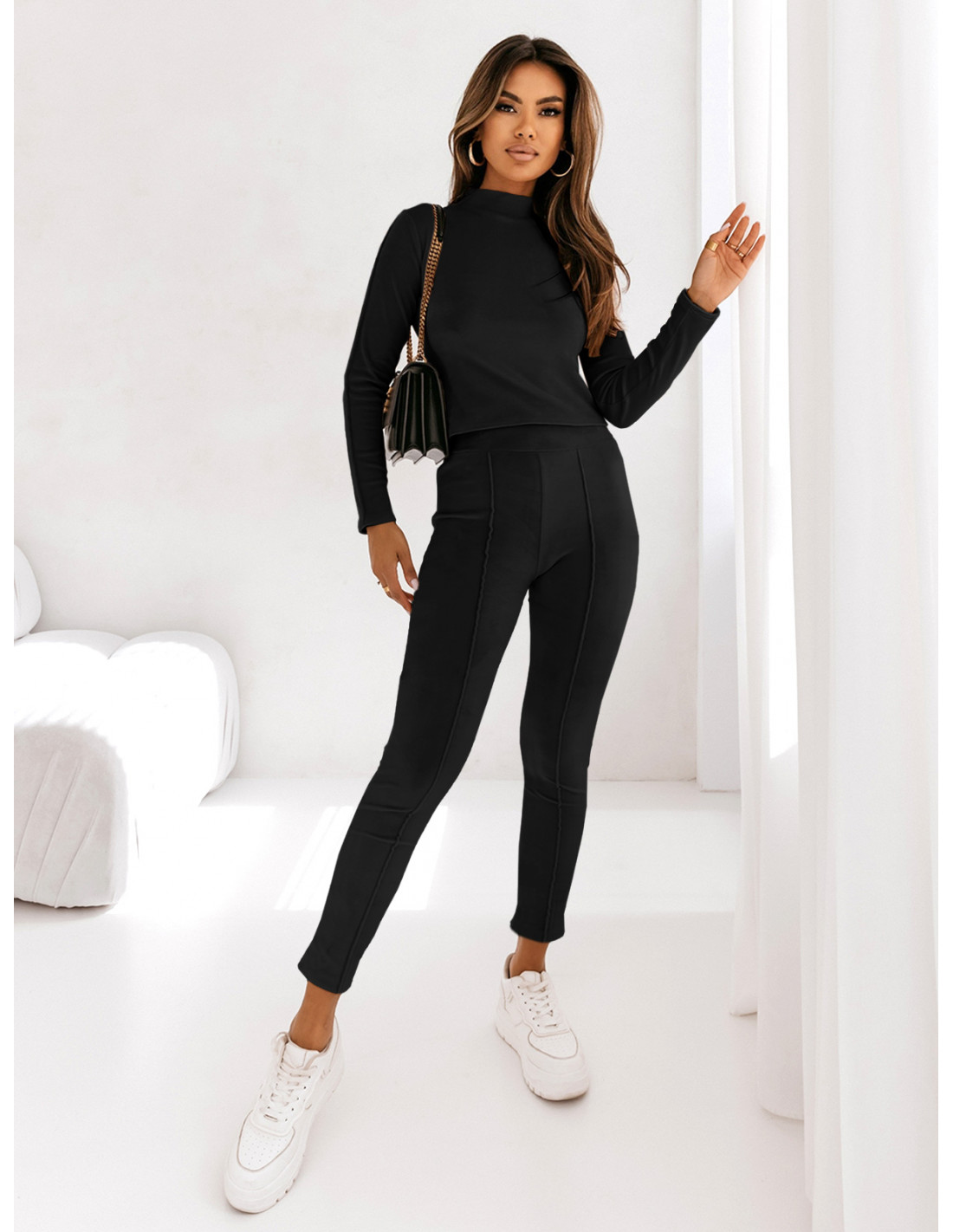 Welurowy komplet bluzka+spodnie SERANO - czarny