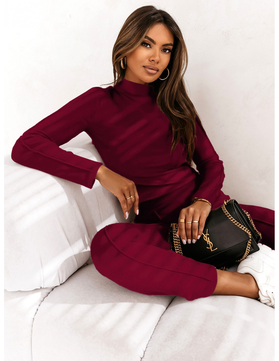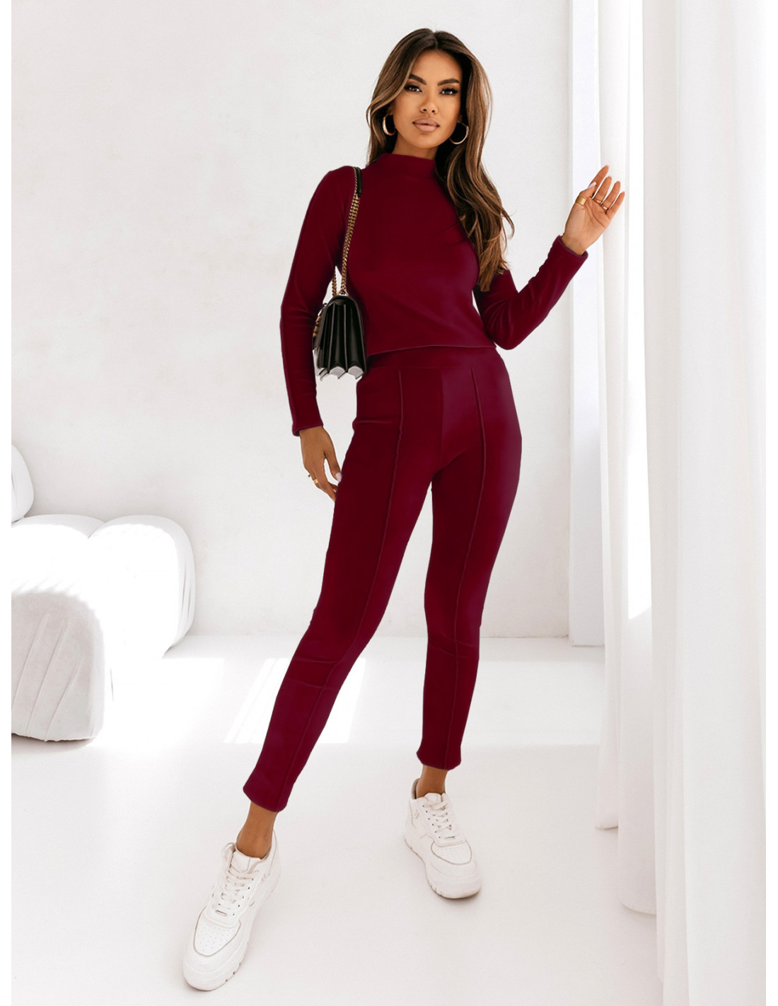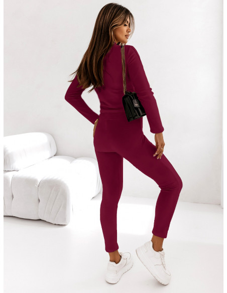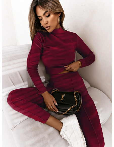 Welurowy komplet bluzka+spodnie SERANO - bordowy