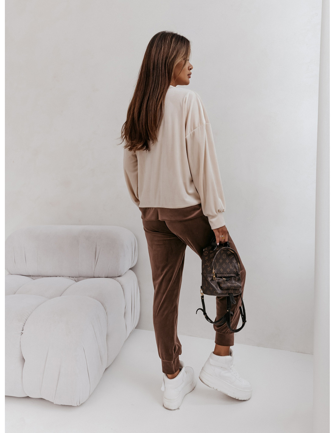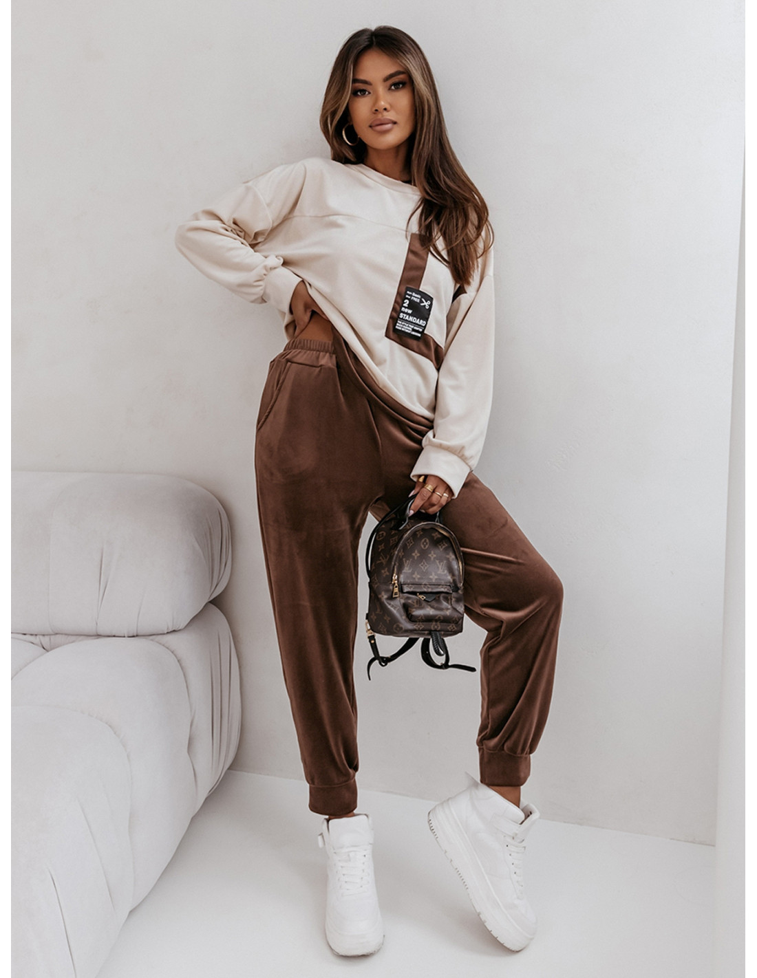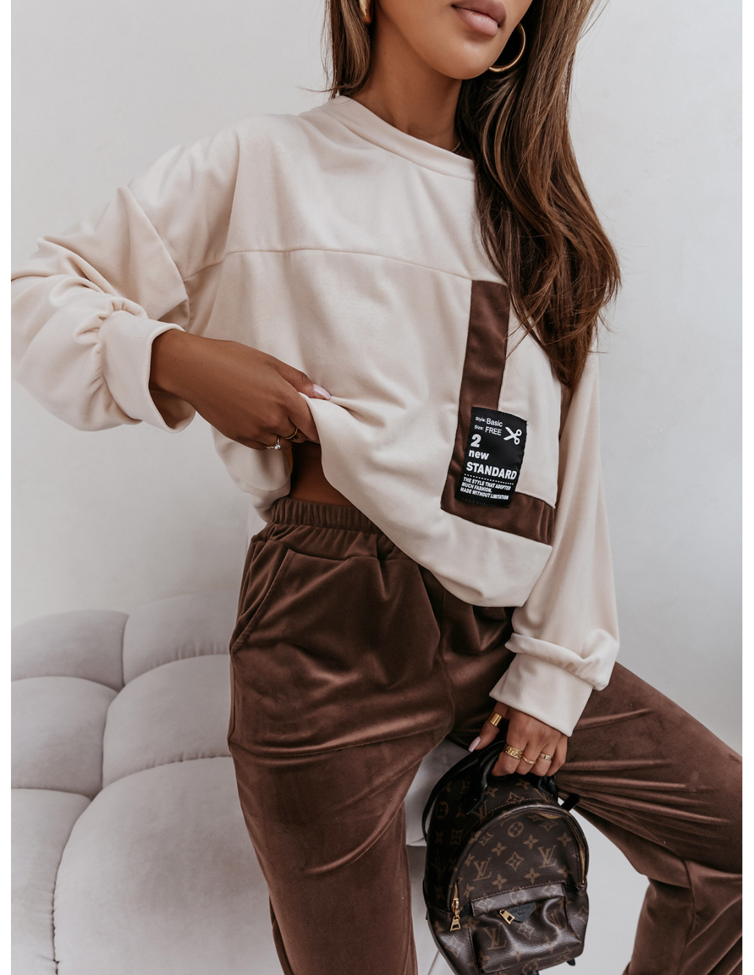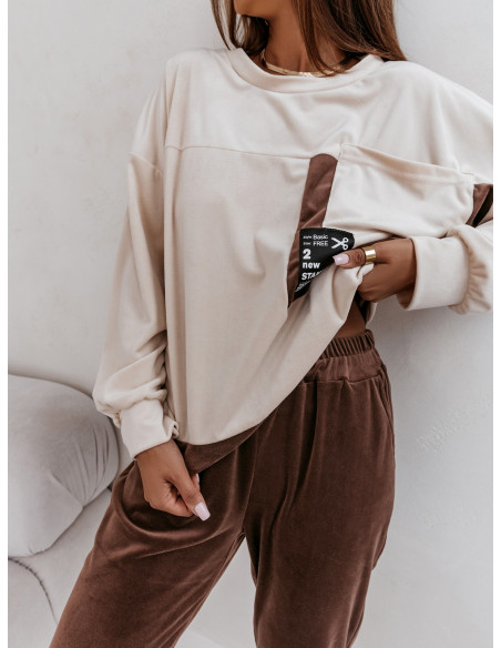 Dres welurowy z kieszenią z przodu RAZAN - beżowy
