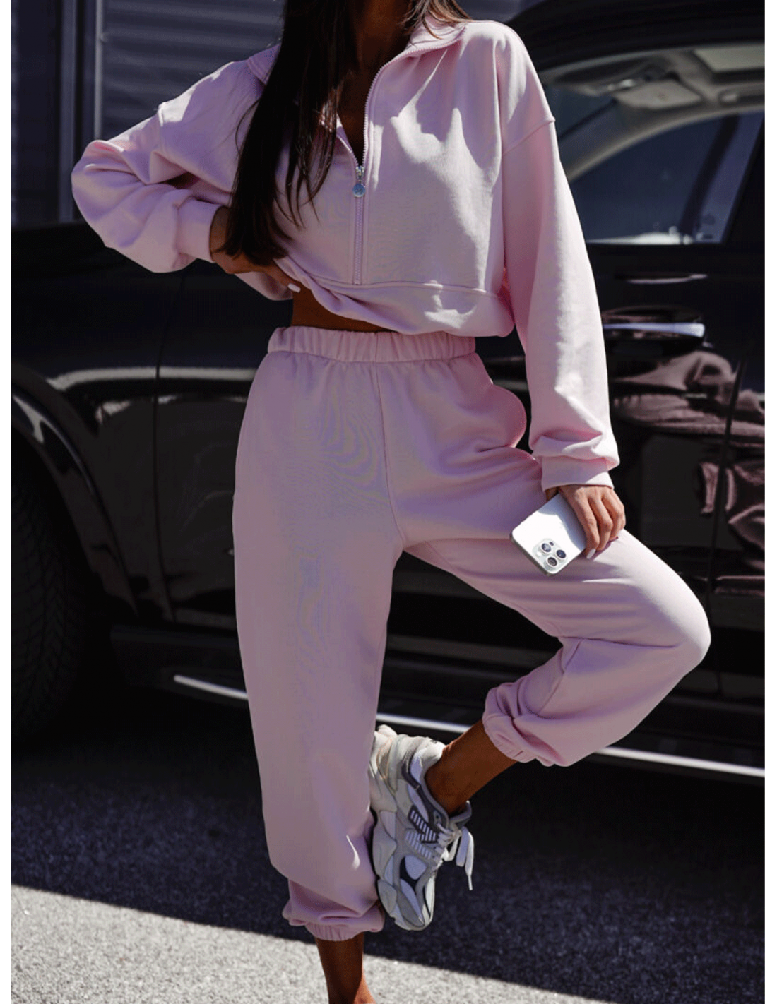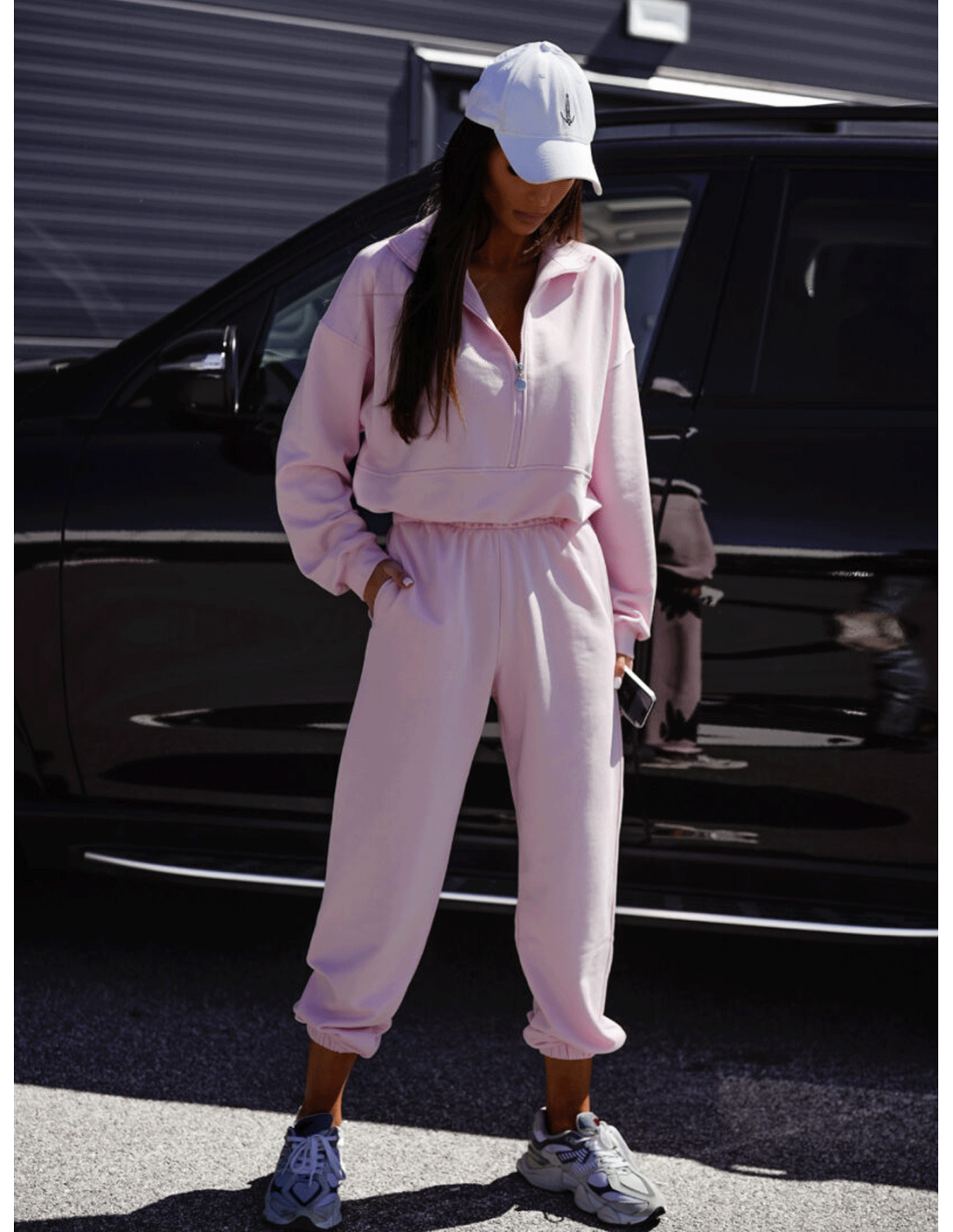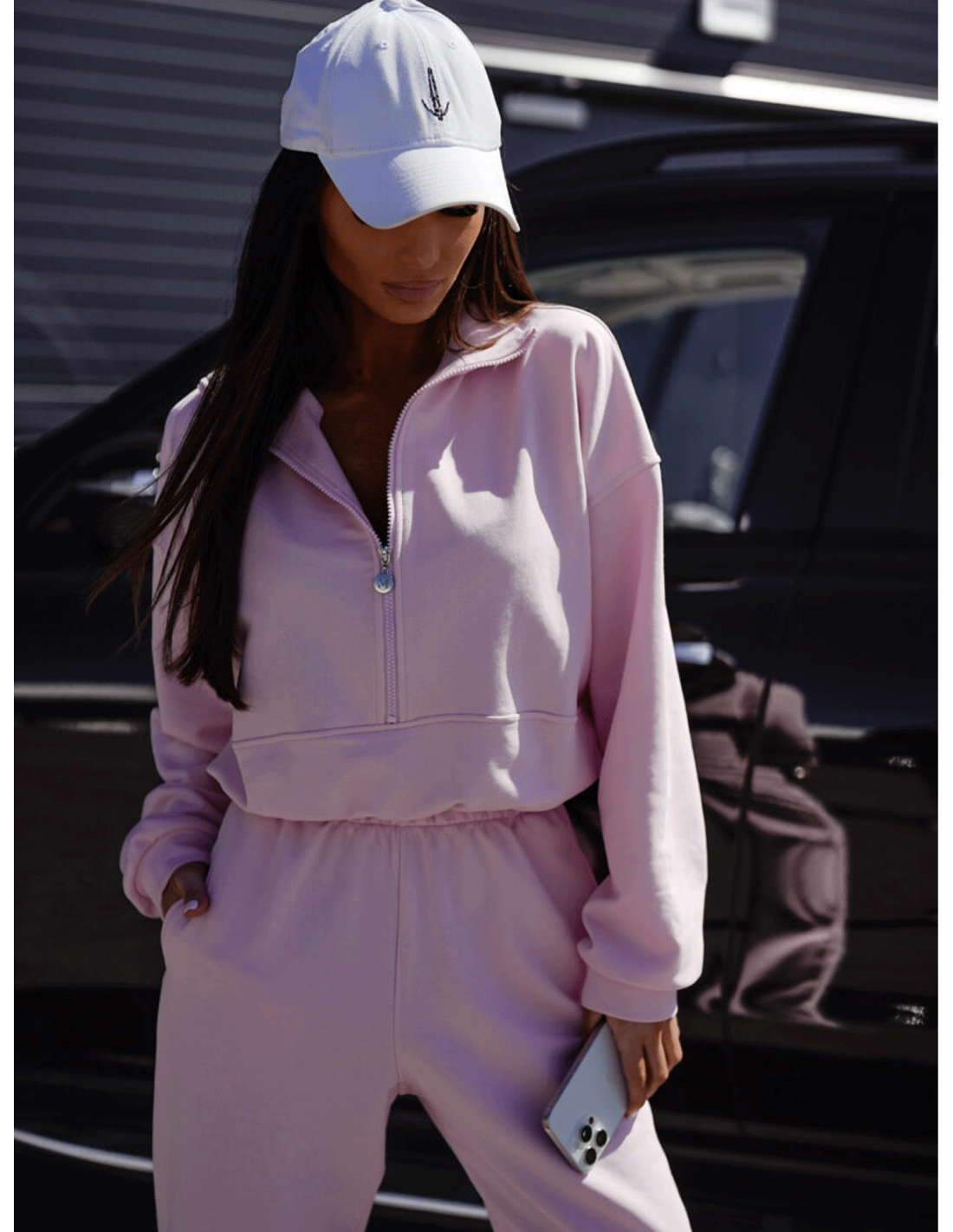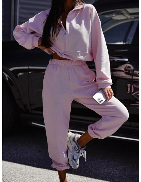 Bawełniany komplet dresowy bluza + spodnie DEMI - pudrowy róż