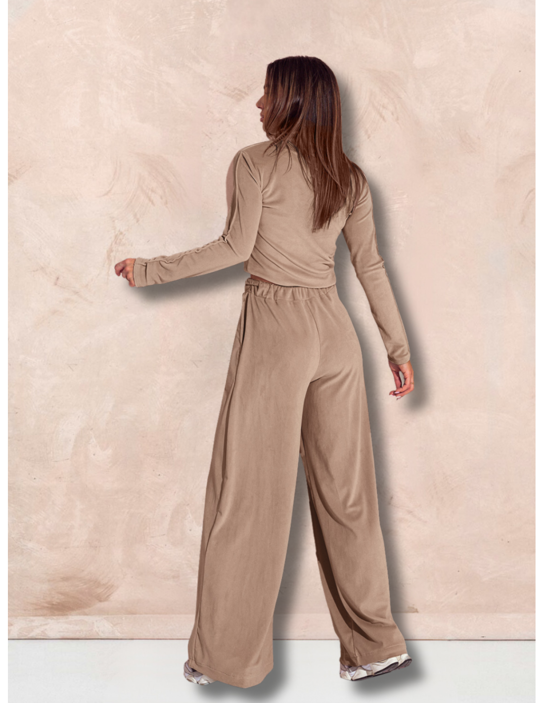 Welurowy dres spodnie + bluza ROSE - mocha mousse