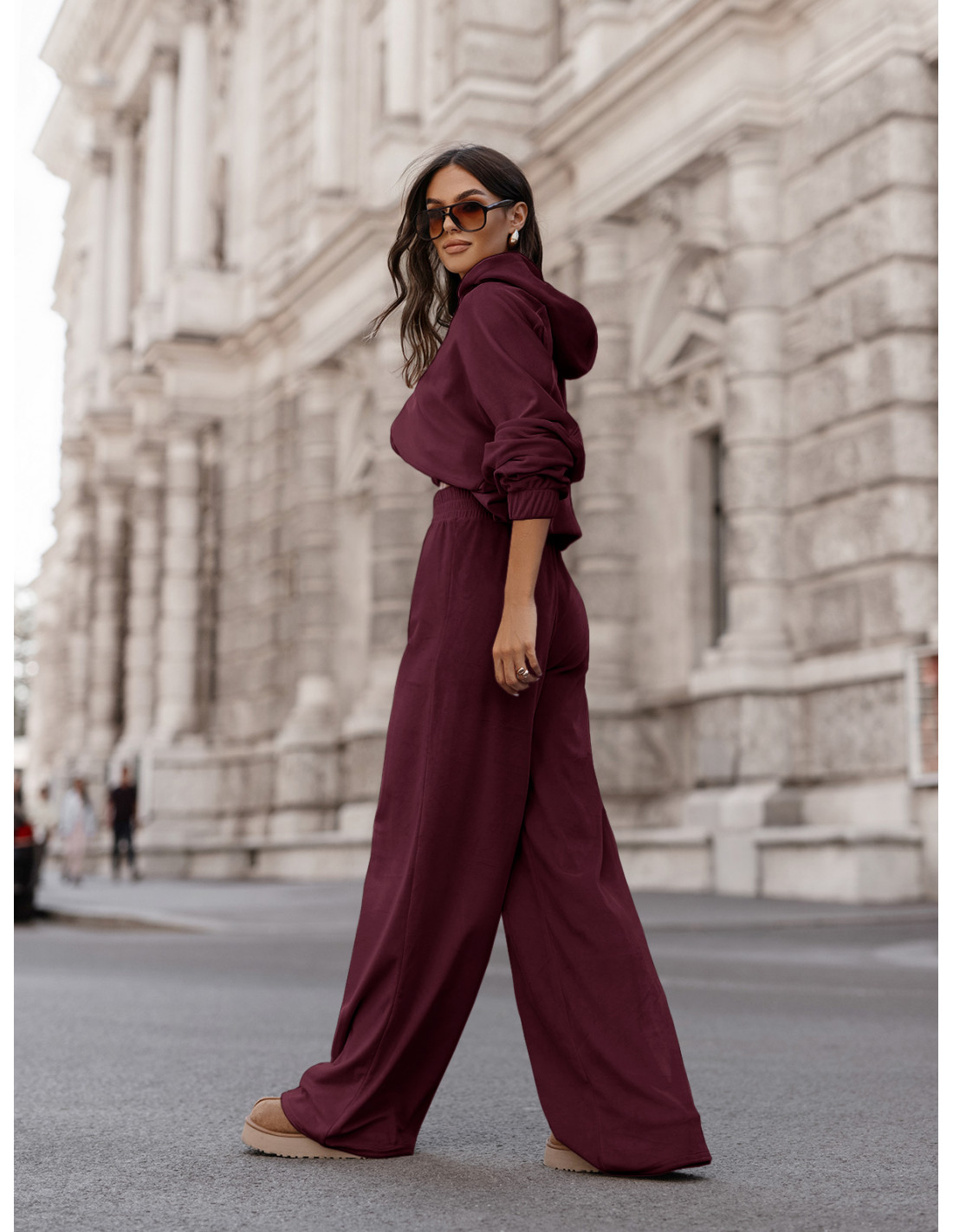 Welurowy dres bluza i szerokie spodnie MAXIM - bordowy