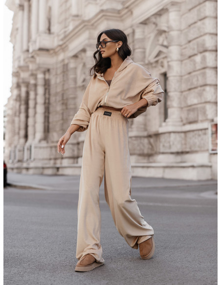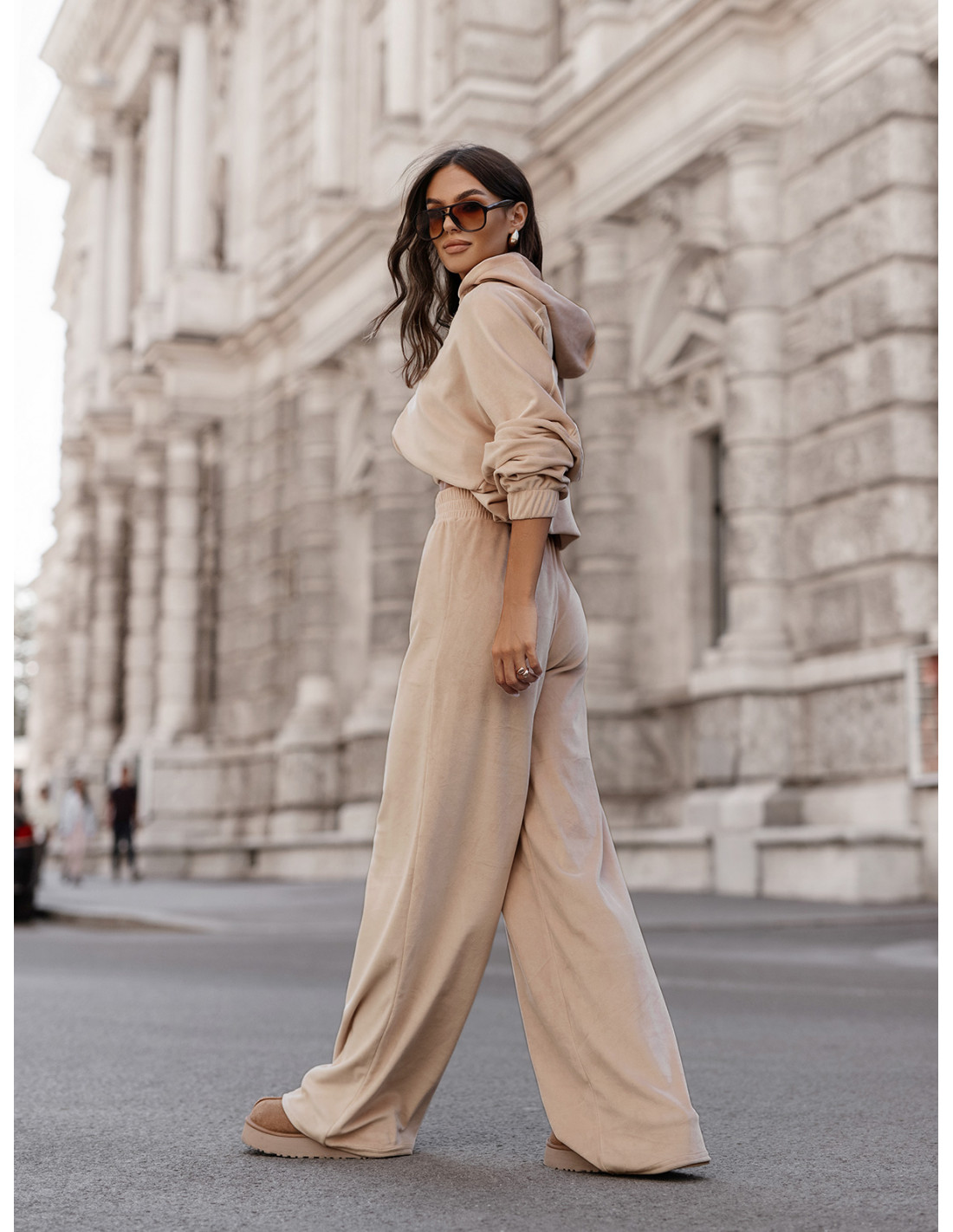 WP welurowy dres bluza i szerokie spodnie - beżowy