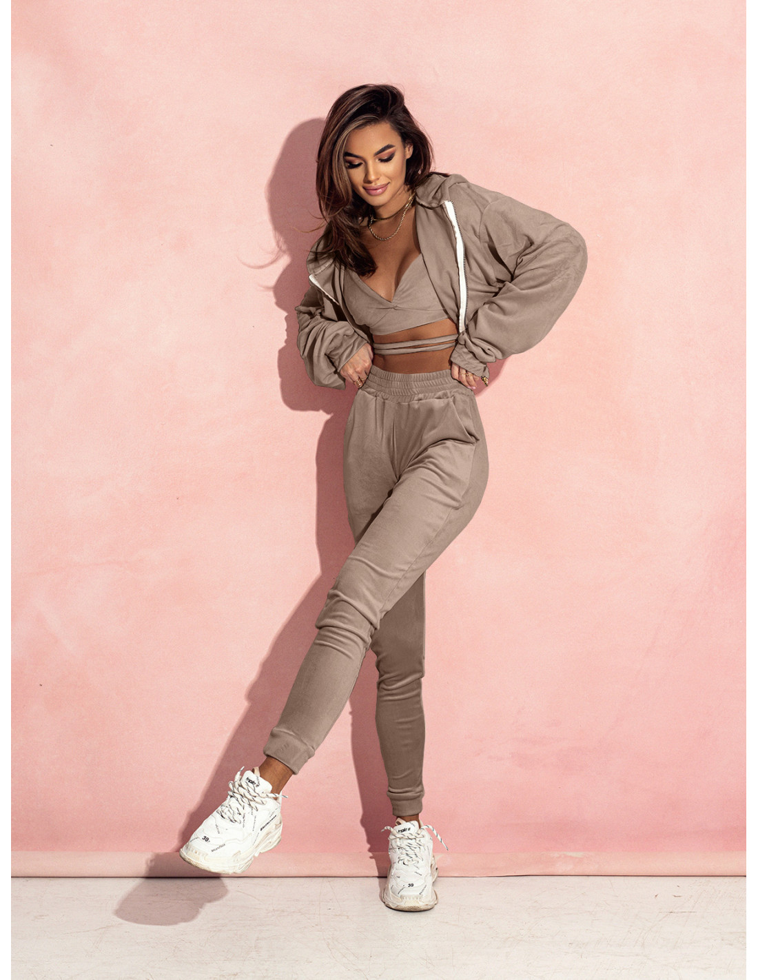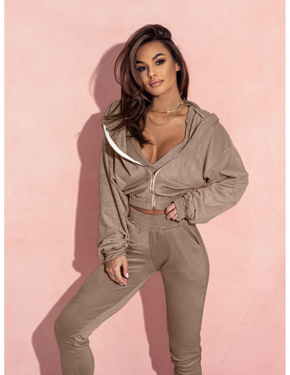 Z naszym welurowym dresowym kompletem w kolorze cappuccino każdego dnia masz gotową stylizację!