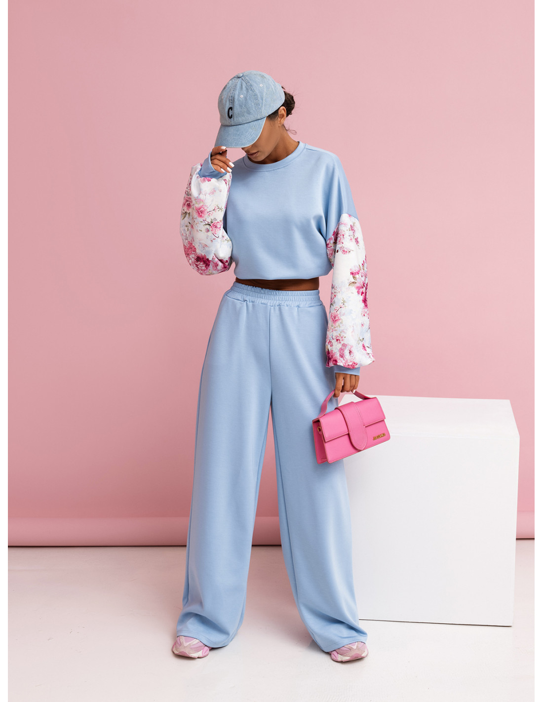 Wiskozowy dres z szerokimi spodniami WISSA - niebieski