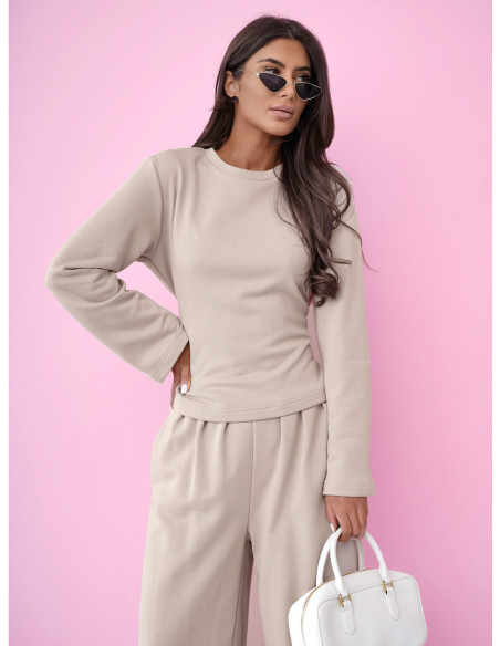 Bawełniany komplet dresowy z szerokimi spodniami ISSA - beżowy