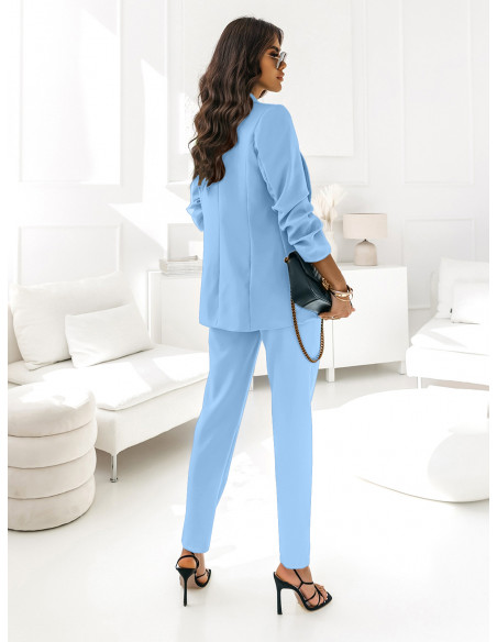 Ten elegancki, stylowy błękitny garnitur to absolutny must-have sezonu i jeden z najbardziej trendy wyborów w kobiecej garderobie.