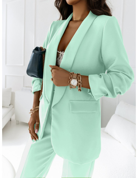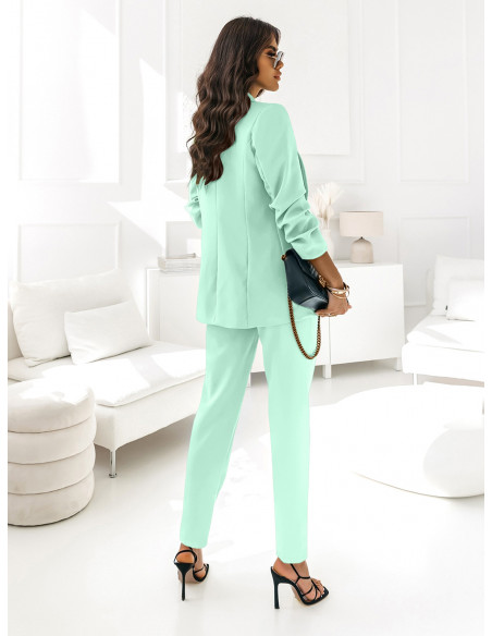 Ten elegancki, stylowy garnitur w miętowym kolorze to absolutny must-have sezonu i jeden z najbardziej trendy wyborów w kobiecej garderobie.