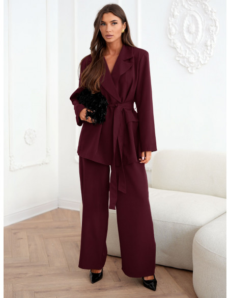 Stylowy garnitur w kolorze bordowym to propozycja dla kobiet ,które kochają elegancję w nowoczesnym odważnym wydaniu.