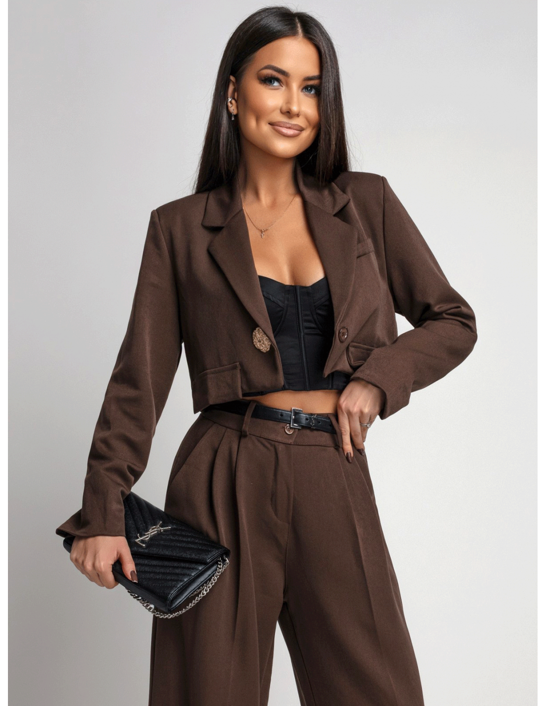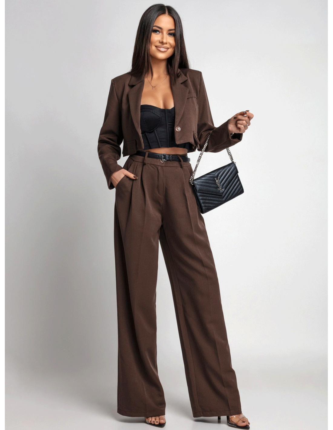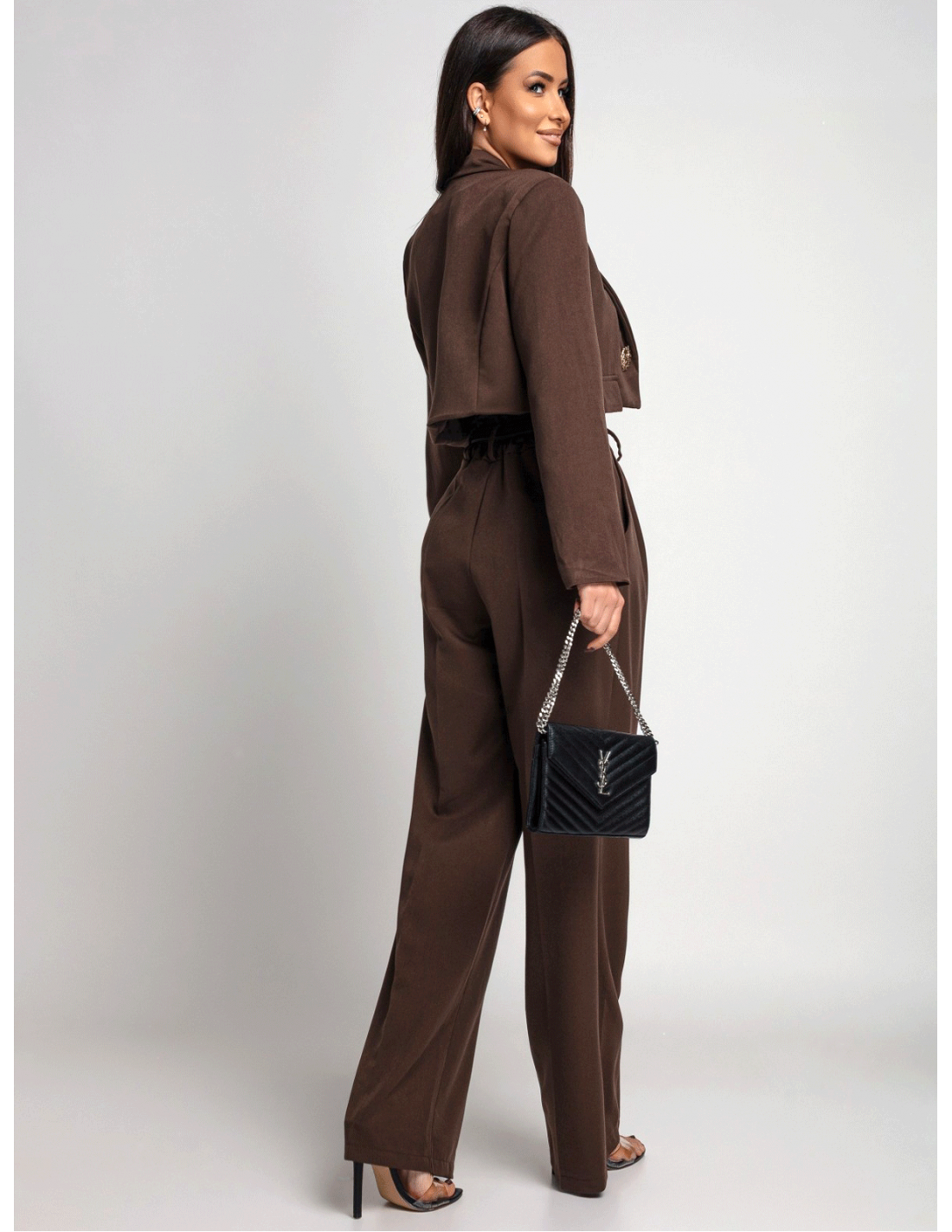 Garnitur krótka marynarka i szerokie spodnie FENZO - czekoladowy