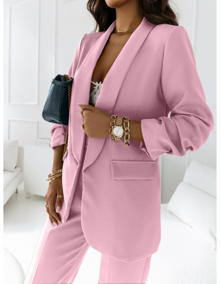 Ten elegancki, stylowy garnitur w kolorze brudnego różu to absolutny must-have sezonu i jeden z najbardziej trendy wyborów w kobiecej garderobie.