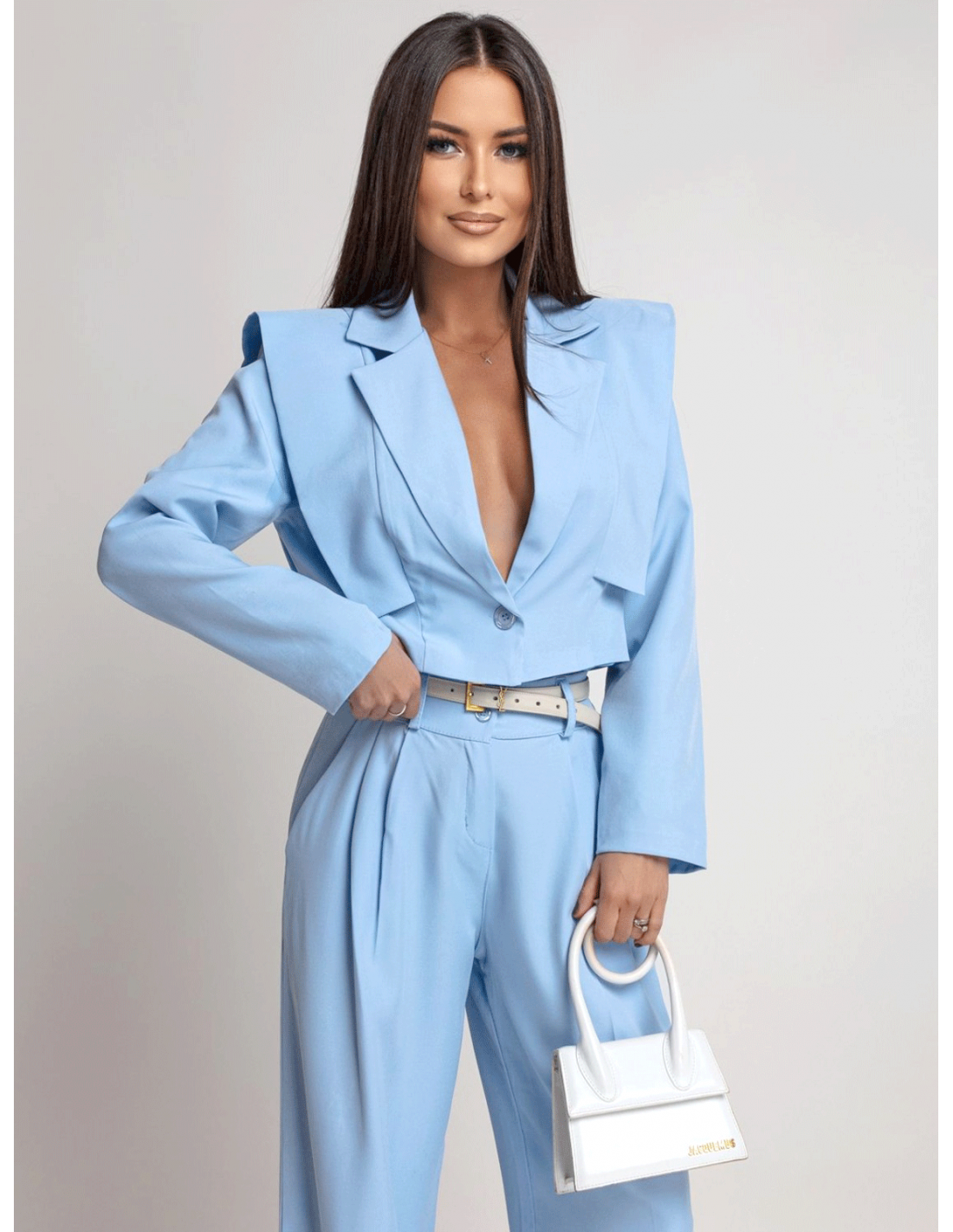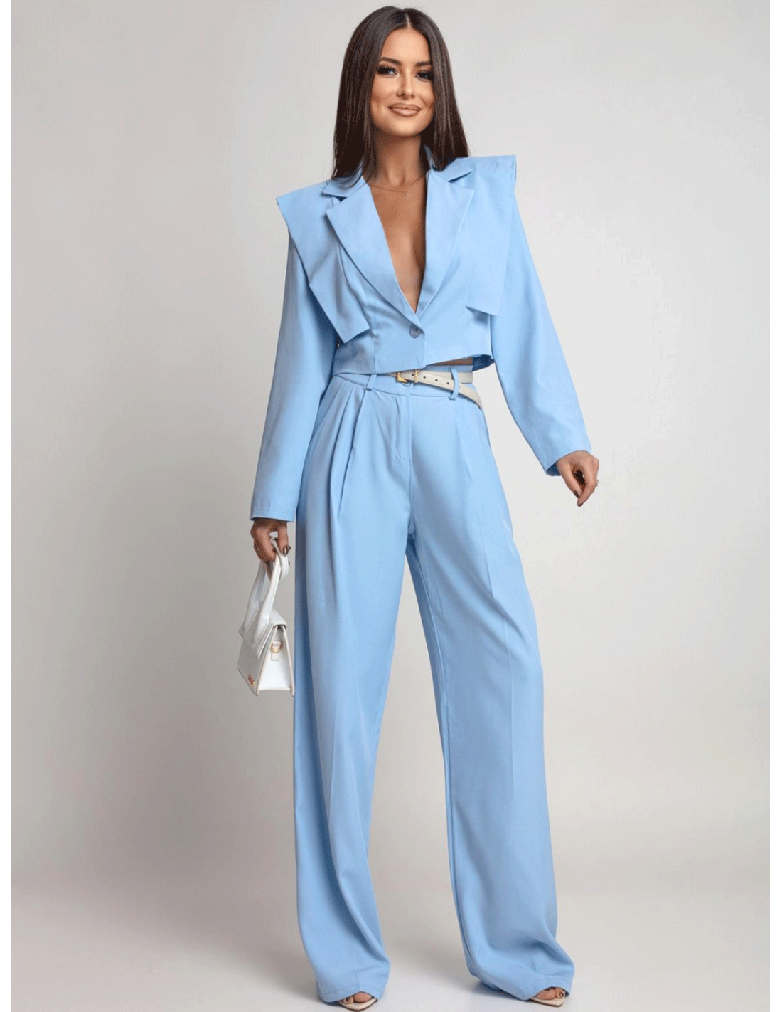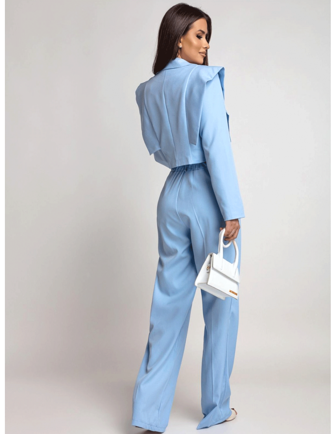 Stylowy garnitur z szerokimi spodniami ALEAH - błękitny