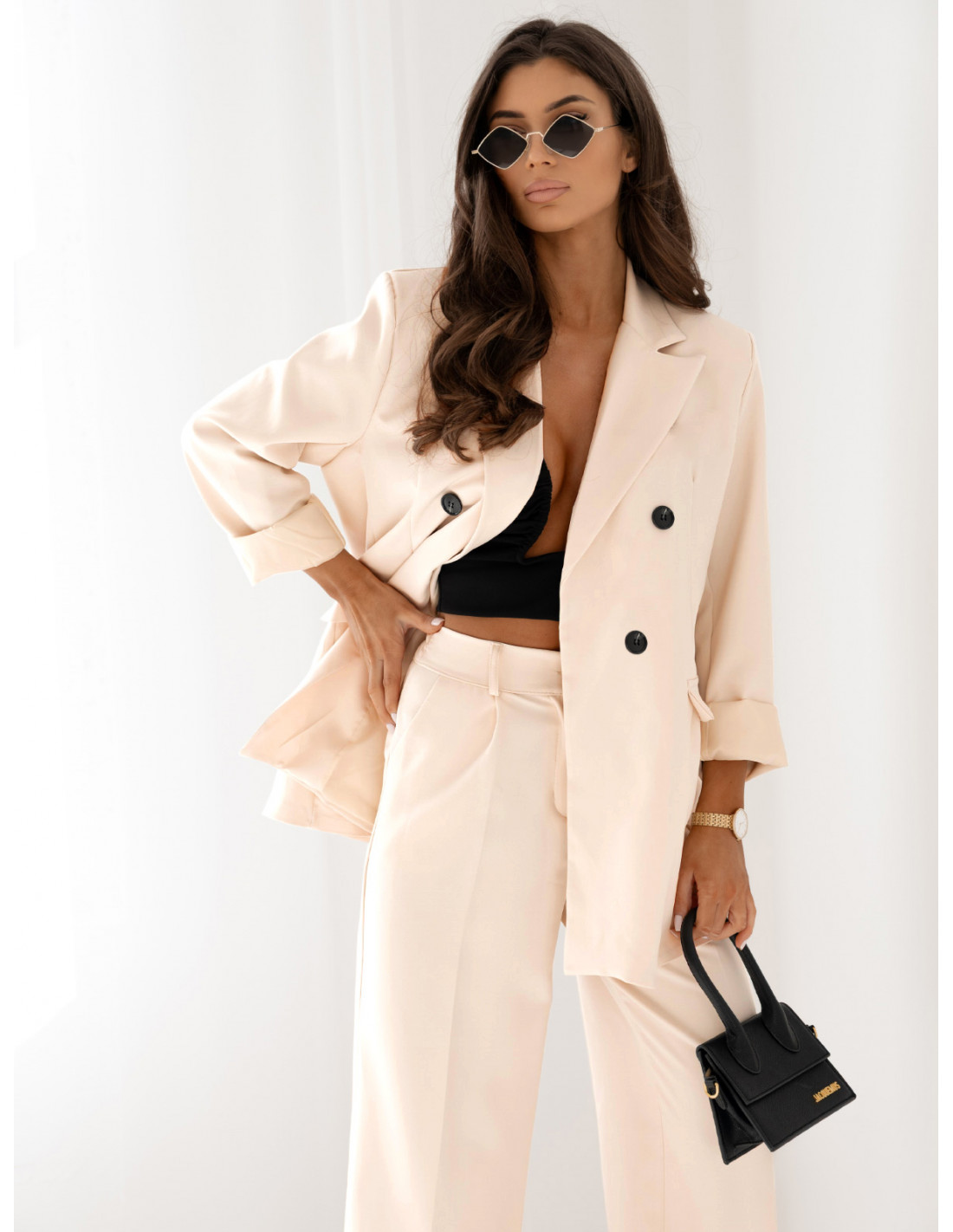 Stylowy garnitur z szerokimi spodniami ELONI - beżowy