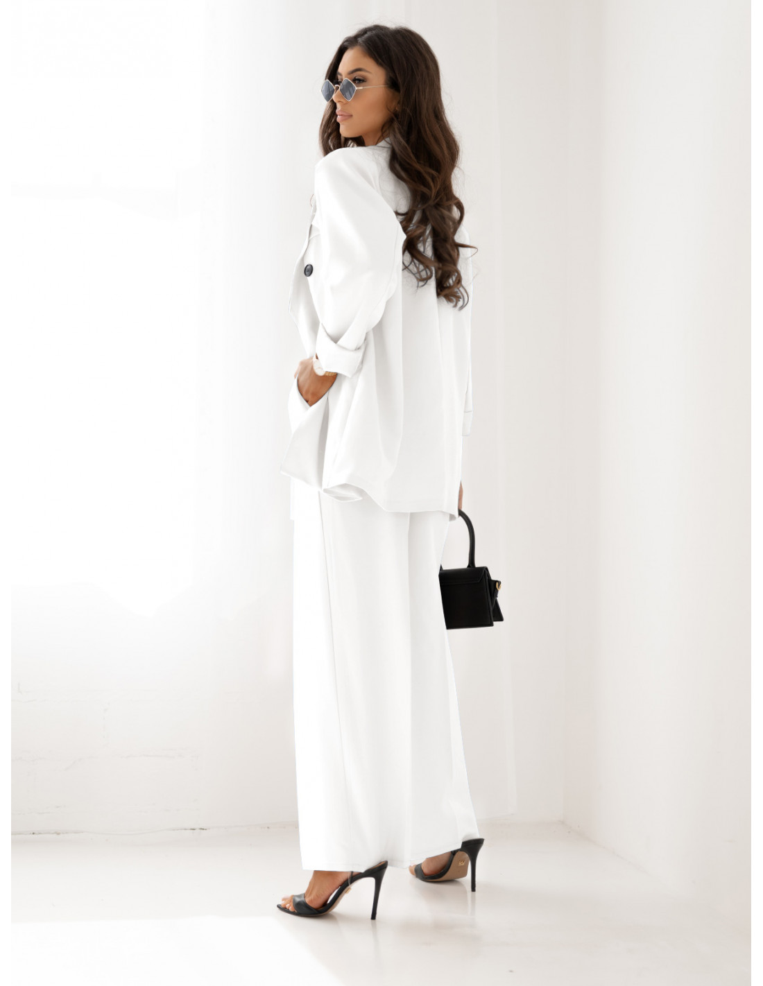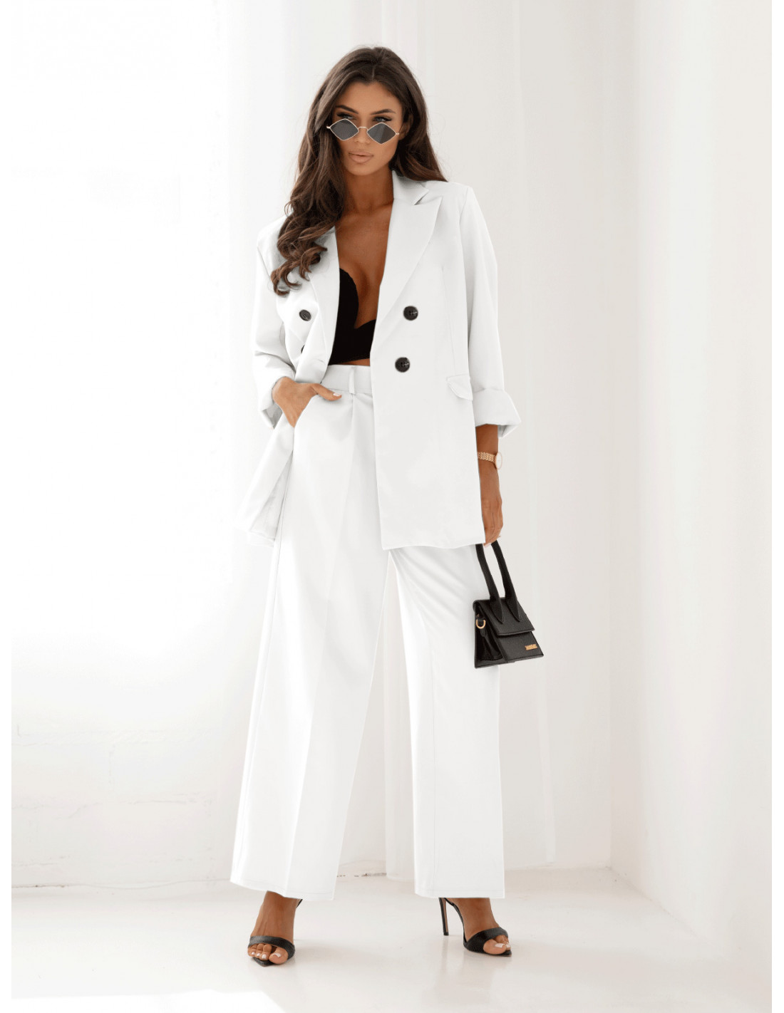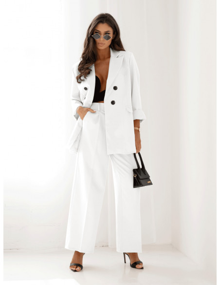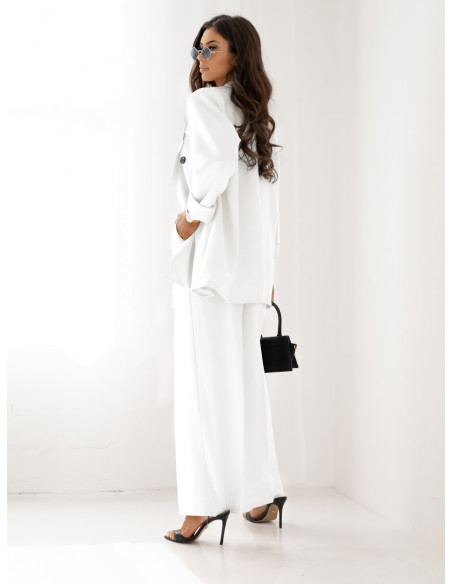 Stylowy garnitur z szerokimi spodniami ELONI - biały