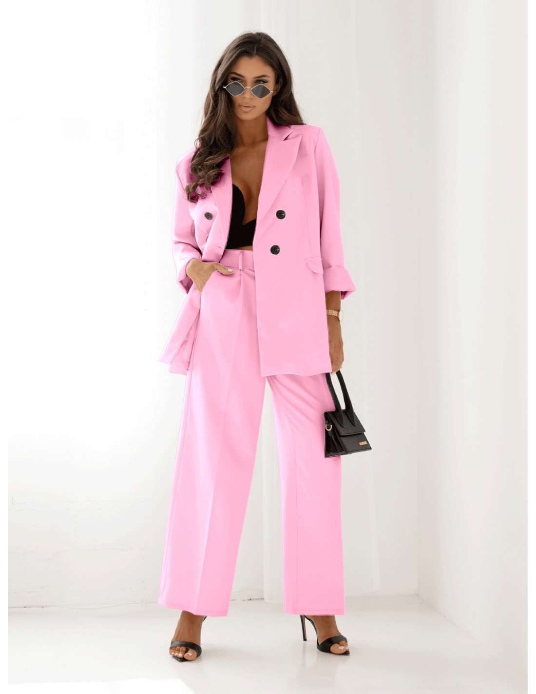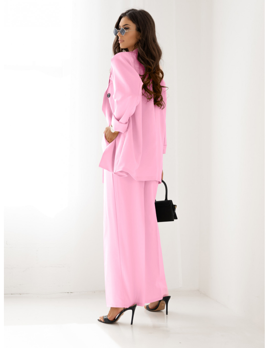 Stylowy garnitur z szerokimi spodniami ELONI - pudrowy róż