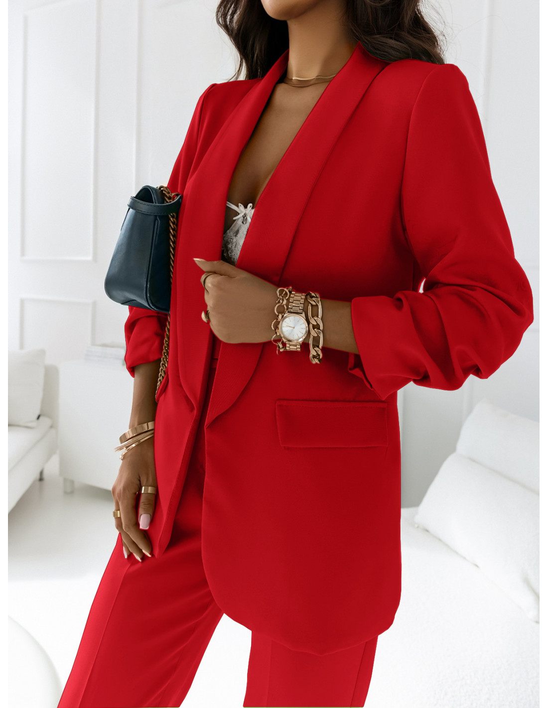 Ten elegancki, stylowy garnitur w czerwonym kolorze to absolutny must-have sezonu i jeden z najbardziej trendy wyborów w kobiecej garderobie.