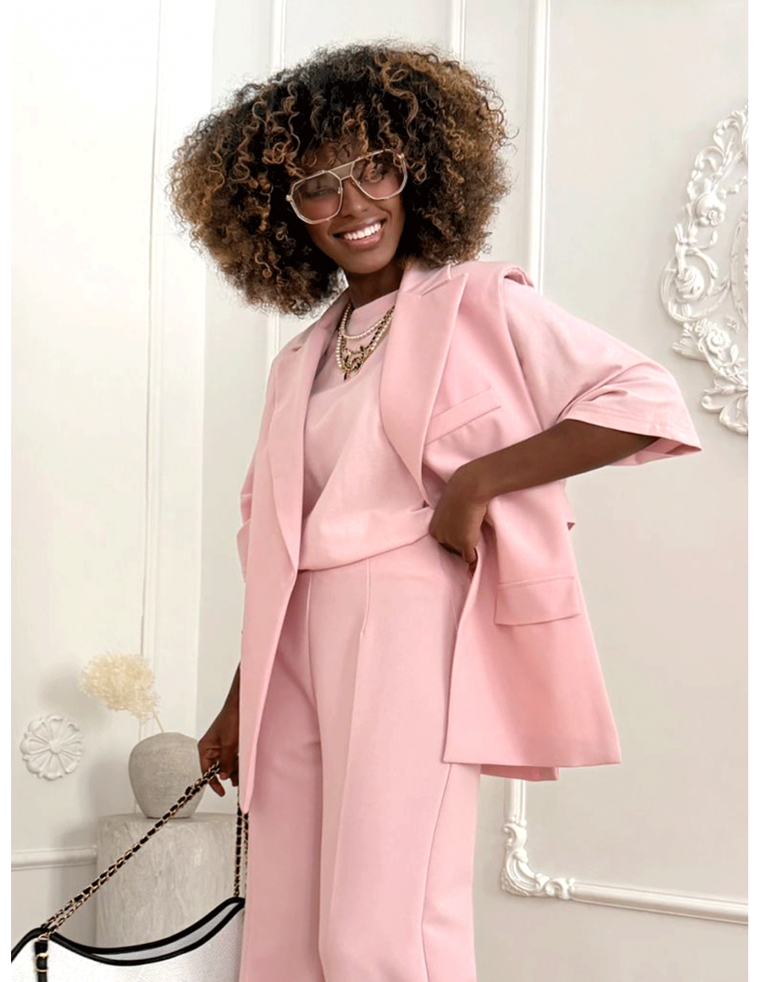 Klasyczna linia inspirowana marynarką nadaje całości wyrafinowanego charakteru.
