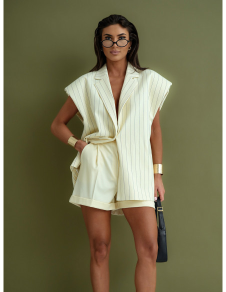 Długa kamizelka oversize w paski CERIA - waniliowa