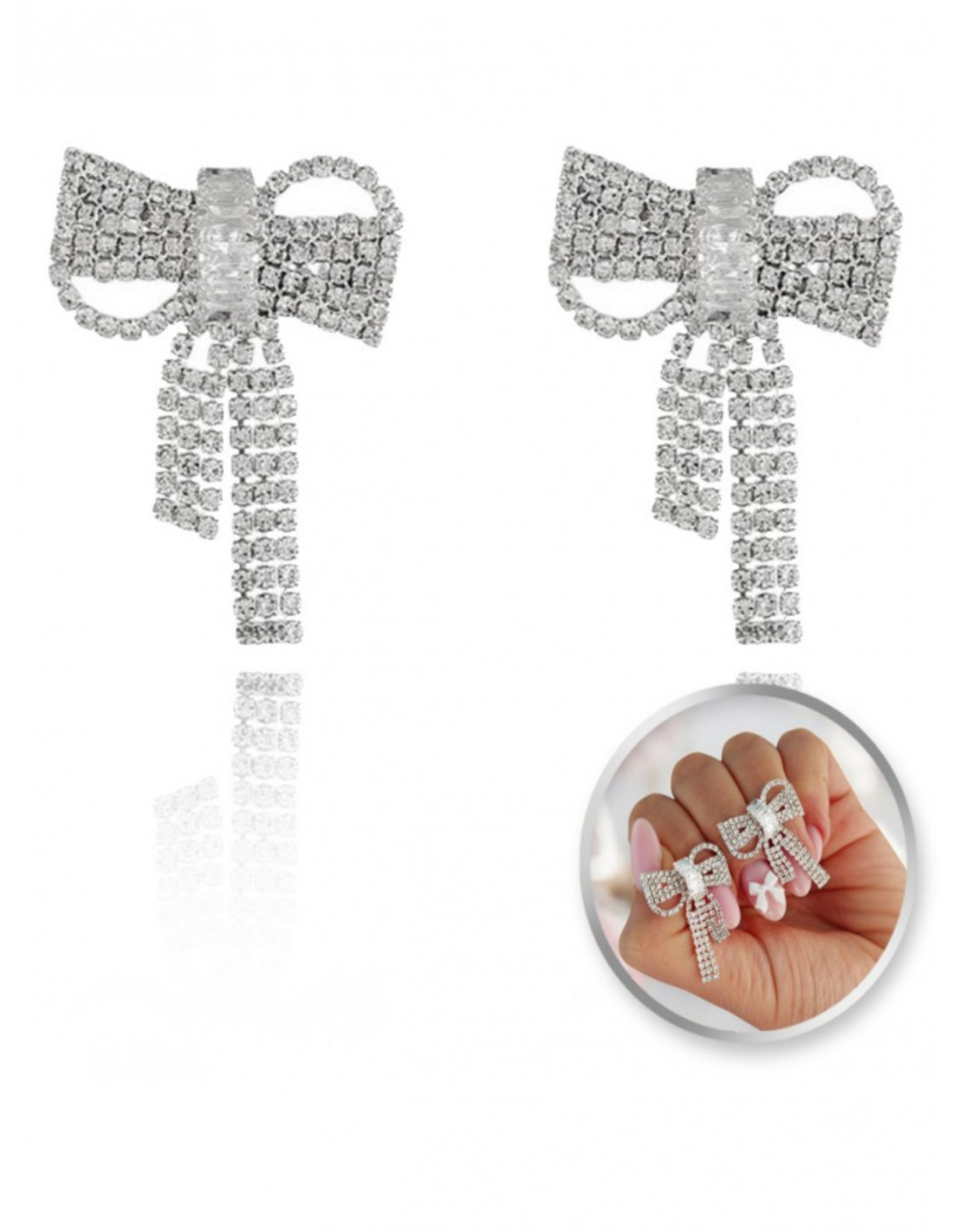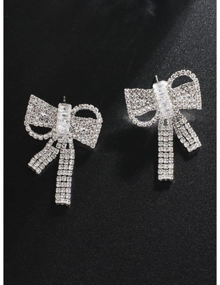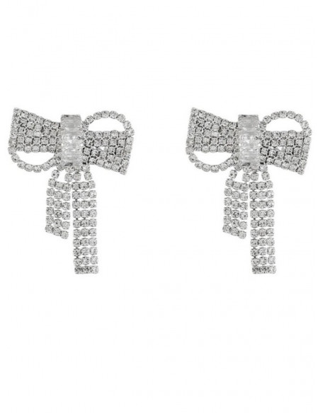 Te srebrne kolczyki w kształcie kokardy zachwycają blaskiem drobnych cyrkonii, które pięknie odbijają światło.